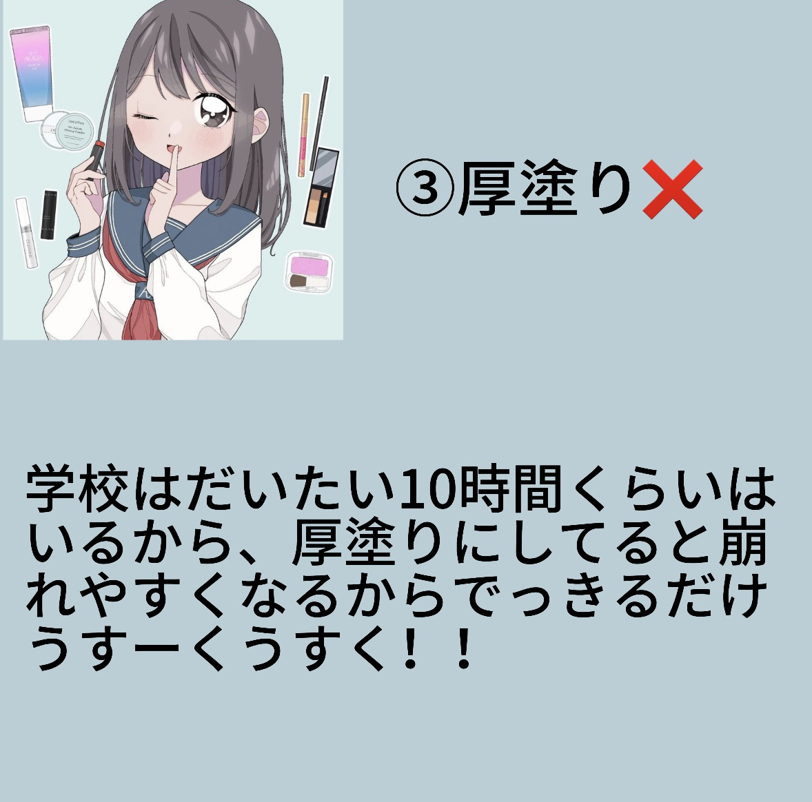 スクールメイクの注意すべきこと!⚠️上の画像で詳しく説明してます!これ参考にしてみんなも青春楽しく可愛く過ごそ!じゃ、バイバイ👋✨#スクールメイク...
