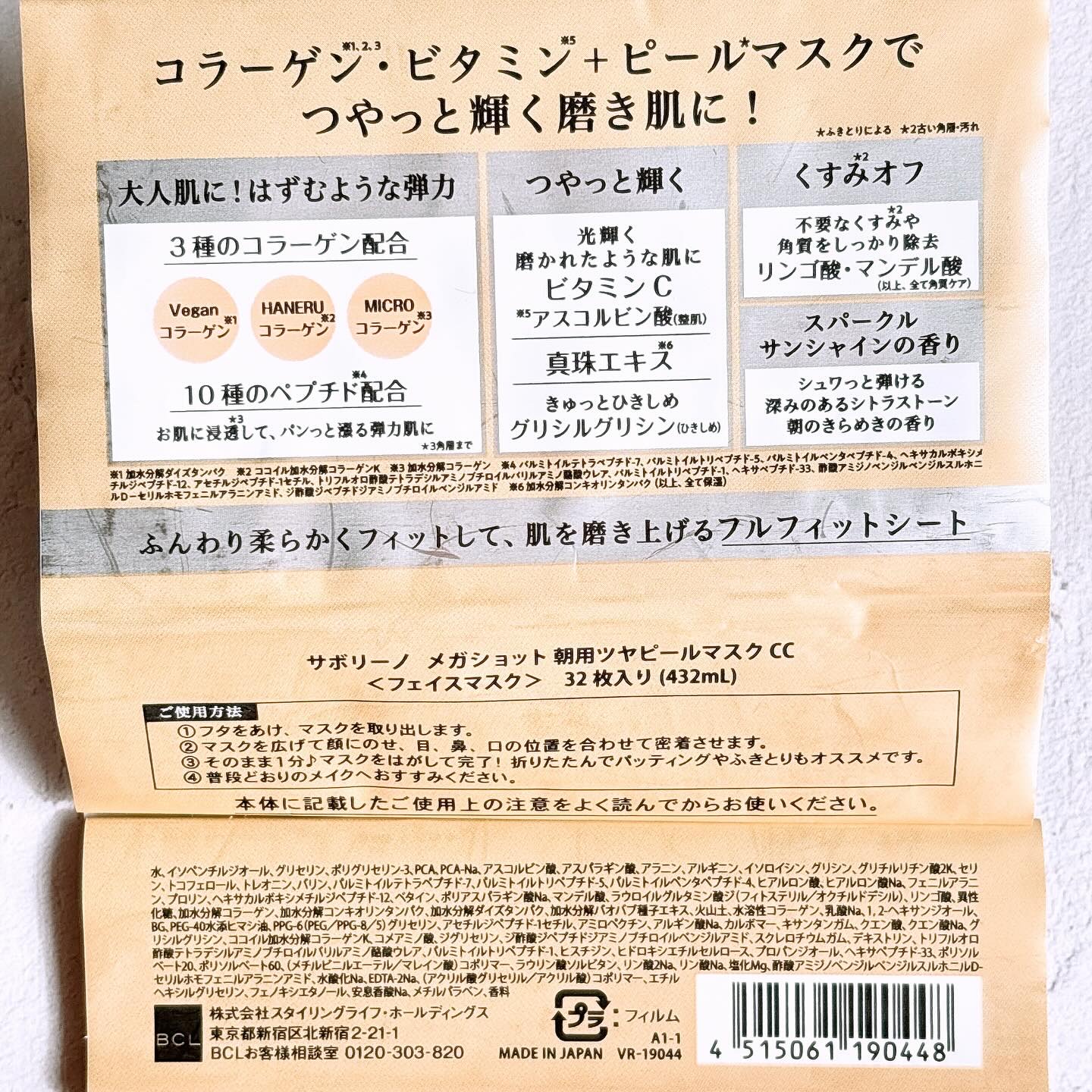 商品詳細情報サボリーノ サボリーノ メガショット 朝用ツヤピールマスク CC