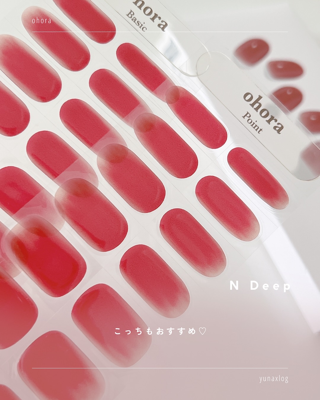 私が今使ってるのはレッドワイン×ゴールドのデザイン💅大人可愛くて華やかで、「え?これシールなの?」って驚かれました♡ツルツル感とほどよい厚みで、まるで本物のジェルネイルみたい。ohoraは〝セミキュアジェル〟という独自技術で作られていて、液状...