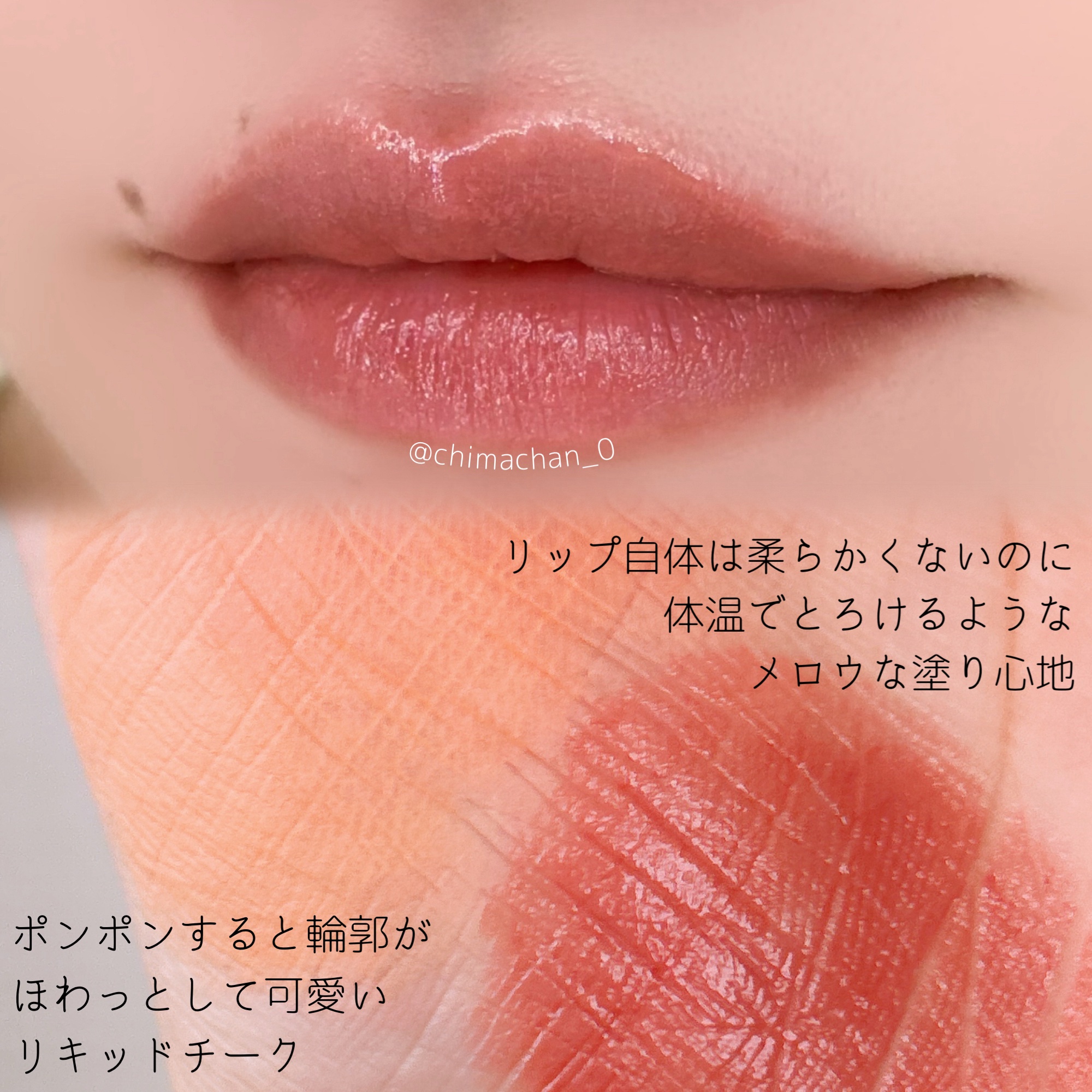 ほんのひとさじブラウンを入れた甘すぎないピンクカラーで本当に可愛いいい🥄🥹💗 オススメの塗り方は 塗る→少し待ってティッシュオフ(2回繰り返し🔁) 唇の皮剥けがあって荒れ気味だったのに綺麗に見せてくれるところも信頼しているところの一つ