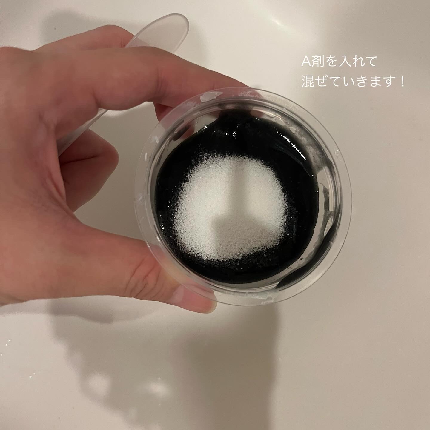 ダークグレーのジェルと白いパウダーを混ぜると、スライムのようにぷるっとしたテクスチャに変化✨この混ぜる工程から楽しい!香りはほんのりアールグレイティーの爽やかさ🍃強すぎず優しい香りなのでスキンケア時間がちょっと癒しの時間に。説明文には肌にのせ...