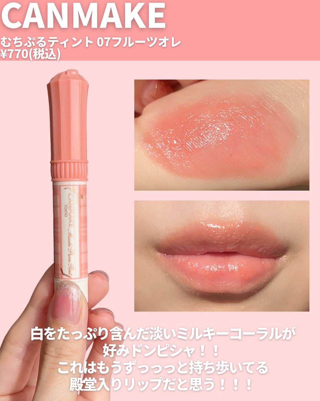 このぷるっぷる唇になれる最高リップを よくぞリニューアルしてくれた🥹💕 つやぷるリップが大好きでこれしか 使ってない時があったなぁ😌💄✨ 明るいベージュで唇にのせるとナチュラルに 血色感UP!! 明るさ、柔らかさが得意なイエベ春さんにおすすめ♡ 明るい黄み寄りピンク♡ イエベ春さんに幅広くおすすめ♡ 腕にだすとしっかりめブラウンカラーだけど 唇にのせるのそんなに重たくない印象! イエベ秋さんに幅広くおすすめ♡ 明るさ得意な春夏タイプが使いやすい ピンクカラー♡ 名前の通り万人に愛されそうなピンク♡ イメージしていたテラコッタより ずっと柔らかく穏やかなカラー♡ 柔らかいイメージにしたい 春秋さんにおすすめ♡ ほんのりくすみがかったピンクブラウン♡ 夏秋またぐかたにおすすめですが イエベ春の私も好き♡ 全7色の中で1番青みを感じるカシスカラー♡ ブルベさんにおすすめ♡