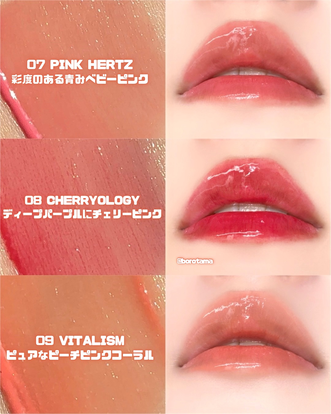 ❁❁❁☑️EITHER&┆DewySyrupTint▼07PINKHERTZ▼08CHERRYOLOGY▼09VITALISM❁❁❁SNSで話題のEITHER&のデューイシロップティントに新色が登場します🌟果汁シロップのようなちゅるんとした光...