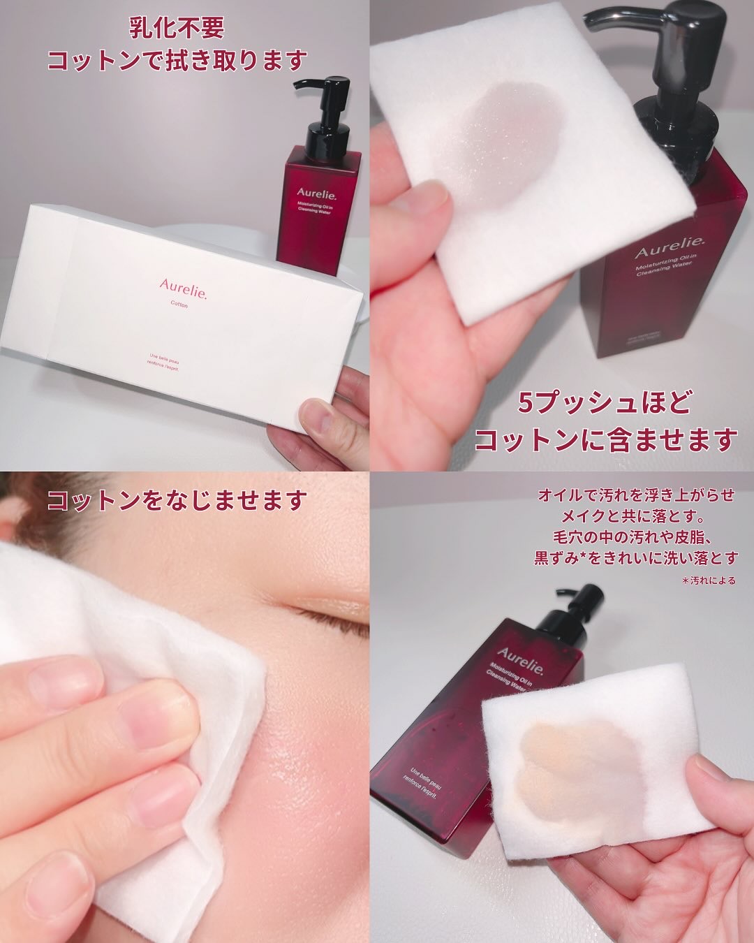 #PR広告で話題の角栓溶解クレンジング【Aurelie.モイストオイルインクレンジングウォーター】優しい使い心地の2層式で、使用前にふってからコットンに出して使用しますさらさらな程よいオイルで乳化の必要がなく、コットンで拭き取るだけの手軽さで...