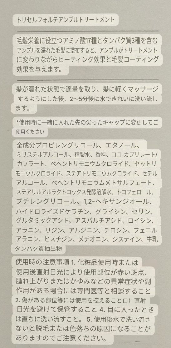 - パーマとカラーを繰り返して傷んだ髪をケアするフォルテアンプルトリートメントです。凝縮したアンプルが濡れた髪の毛と反応して発生した温感によってクリーム状態に変わり、髪へ潤い補給とヘアコーティング効果を与えます。