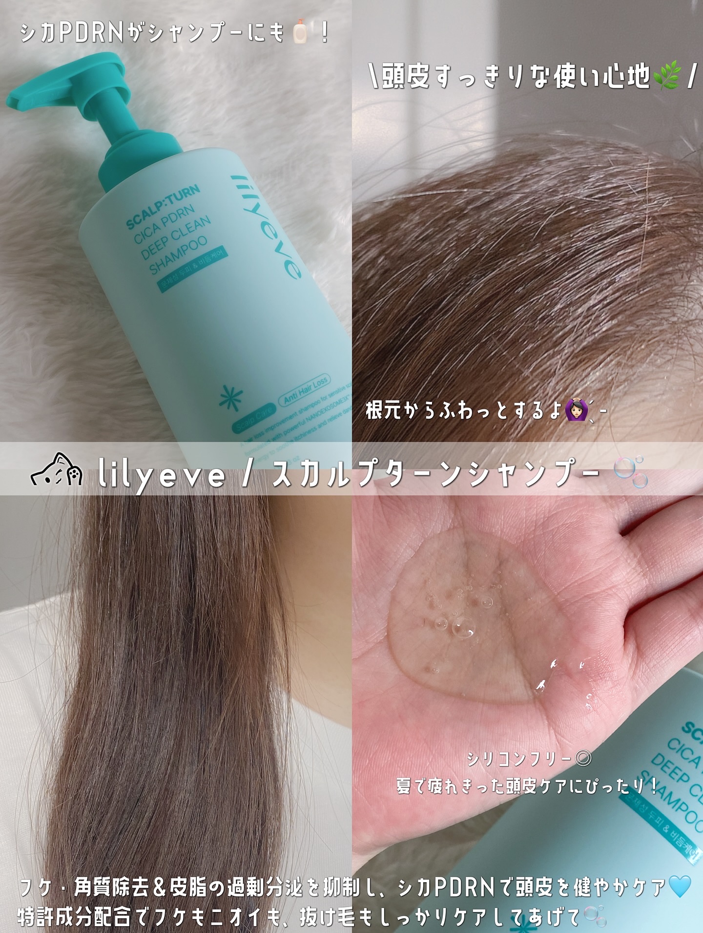 ⋆⸜Lilyeve公式サポーターズ⸝⋆𓍯スカルプターンシャンプー⌇Lilyeveトラブル頭皮×抜け毛ケアに特化したスカルプターンシャンプー🩵✨泡立ち、泡切れ共にとっても良い◎ひんやりスーッとクールな洗い心地がたまらない...!髪の毛だけでなく...