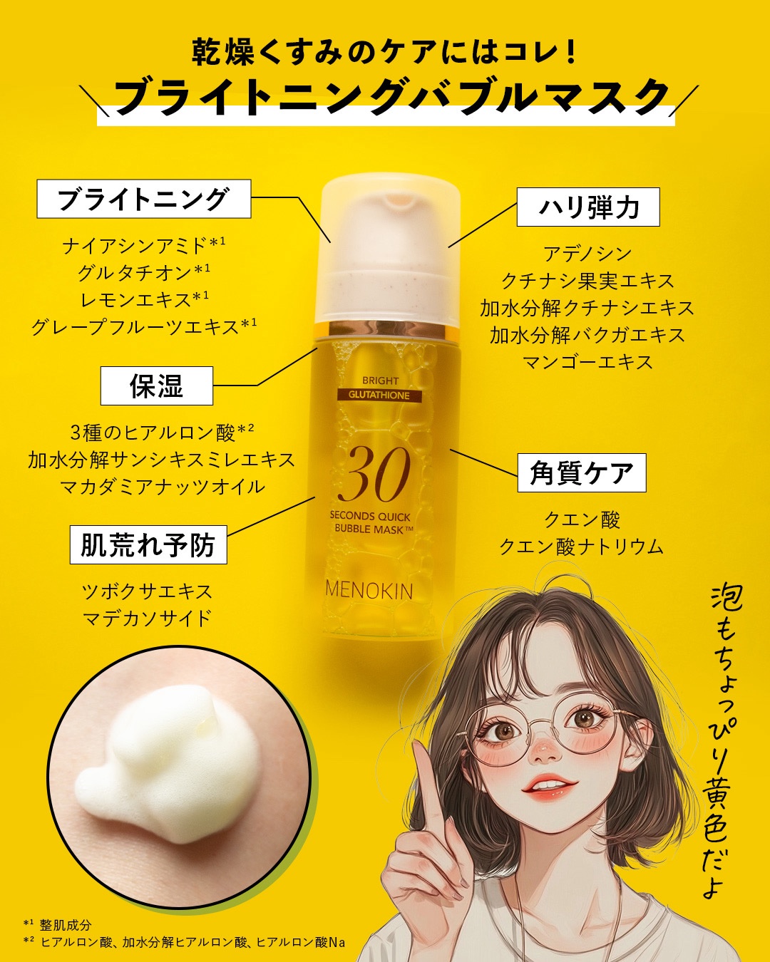.\超時短!30秒バブルマスク🫧/MENOKIN様から製品提供いただきました🤍忙しい毎日に嬉しい、30秒で完了するバブルマスク。マイクロバブルカプセルが効率的に短い時間で美容液成分を角層まで届けてくれる!肌の悩みに合わせて選べるシリーズの中か...