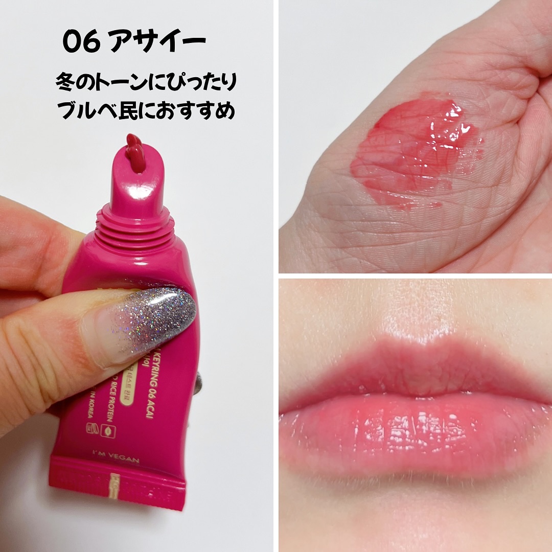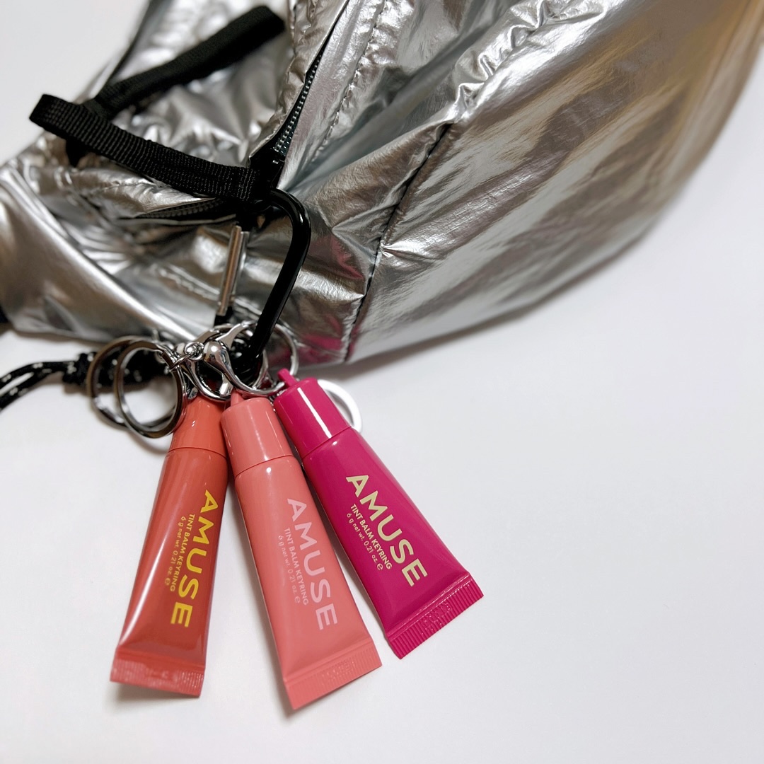 ・AMUSE@amuse.jpティントバームキーリング06アサイー(ブルベ)08ナッツモカ(イエベ)09ローズモモ(ニュートラル/パール入り)୨୧୨୧しっとり保湿力×自然な血色感が叶うAMUSEのキーリングリップ🗝🤍初めて使ったんだけど、めち...