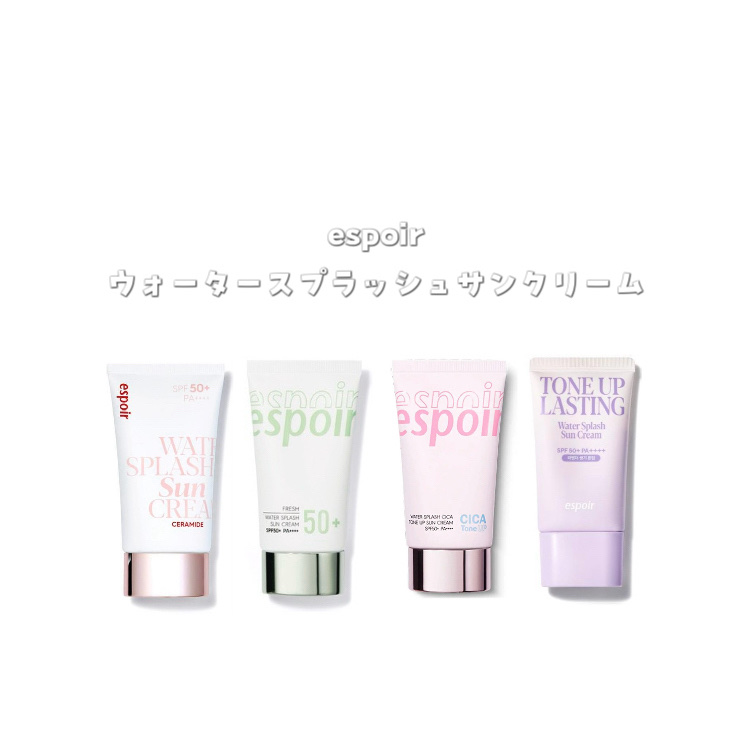 espoir日焼け止め下地🤍🤍🤍🤍🤍🤍🤍🤍🤍🤍🤍トーンアップ下地ウォータースプラッシュサンクリームセラミドSPF50+PA++++トーンアップ感パウダー重ねて使用がお気に入り#肌水分チャージレシピ気になってる方はチェックしてみてください#es...
