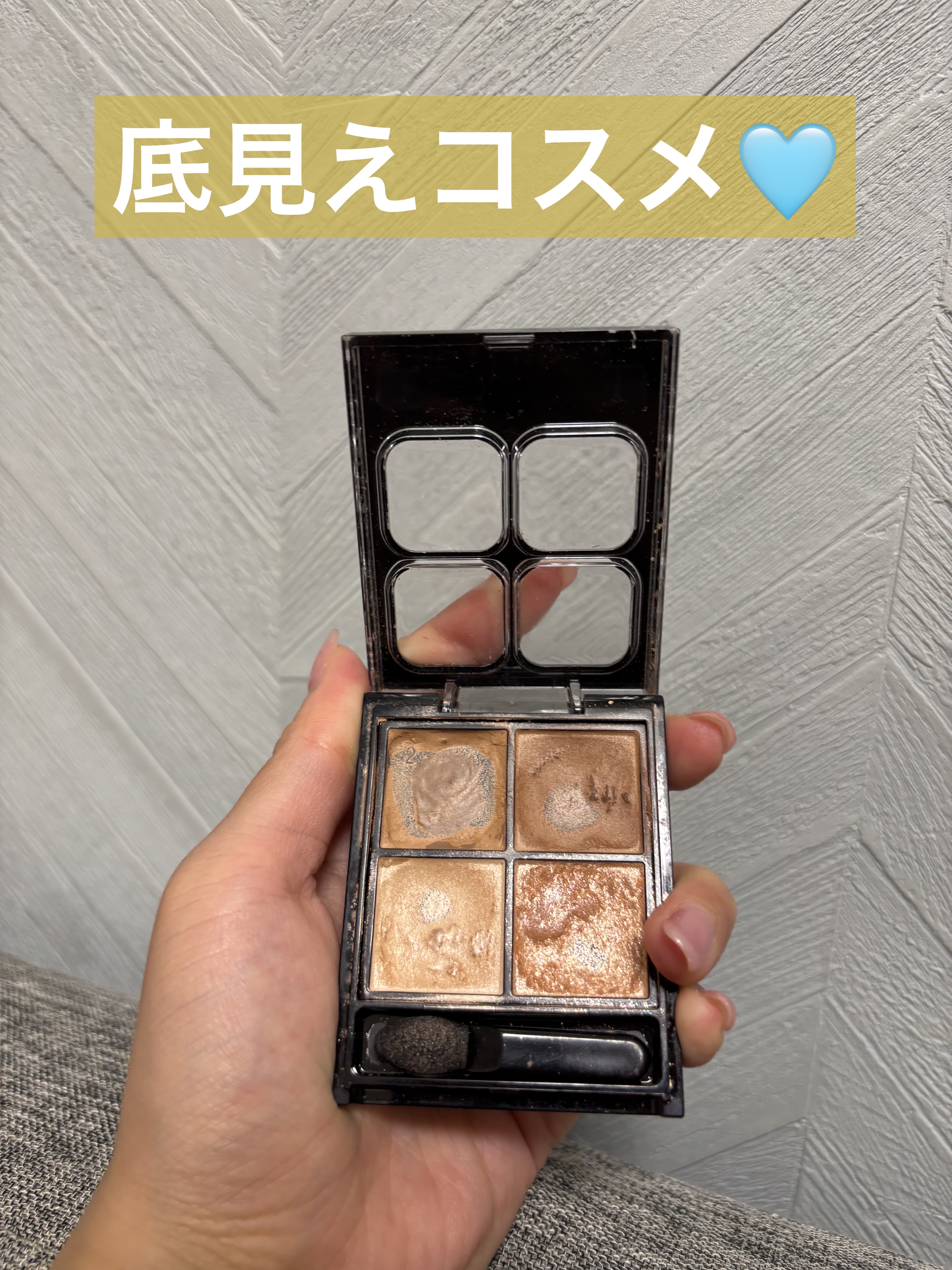 ふんわり発色なので すっぴん風メイクなどナチュラルメイクが好きな人にはめちゃくちゃオススメ 黄みが程よく入ったベージュで肌馴染み抜群カラー しかも4色とも使いやすくて捨て色もなし ミュートマットな上の2色が目元に立体感を出して 下2色がクリアグリッターカラーでうるみをプラスし2.5次元アイに