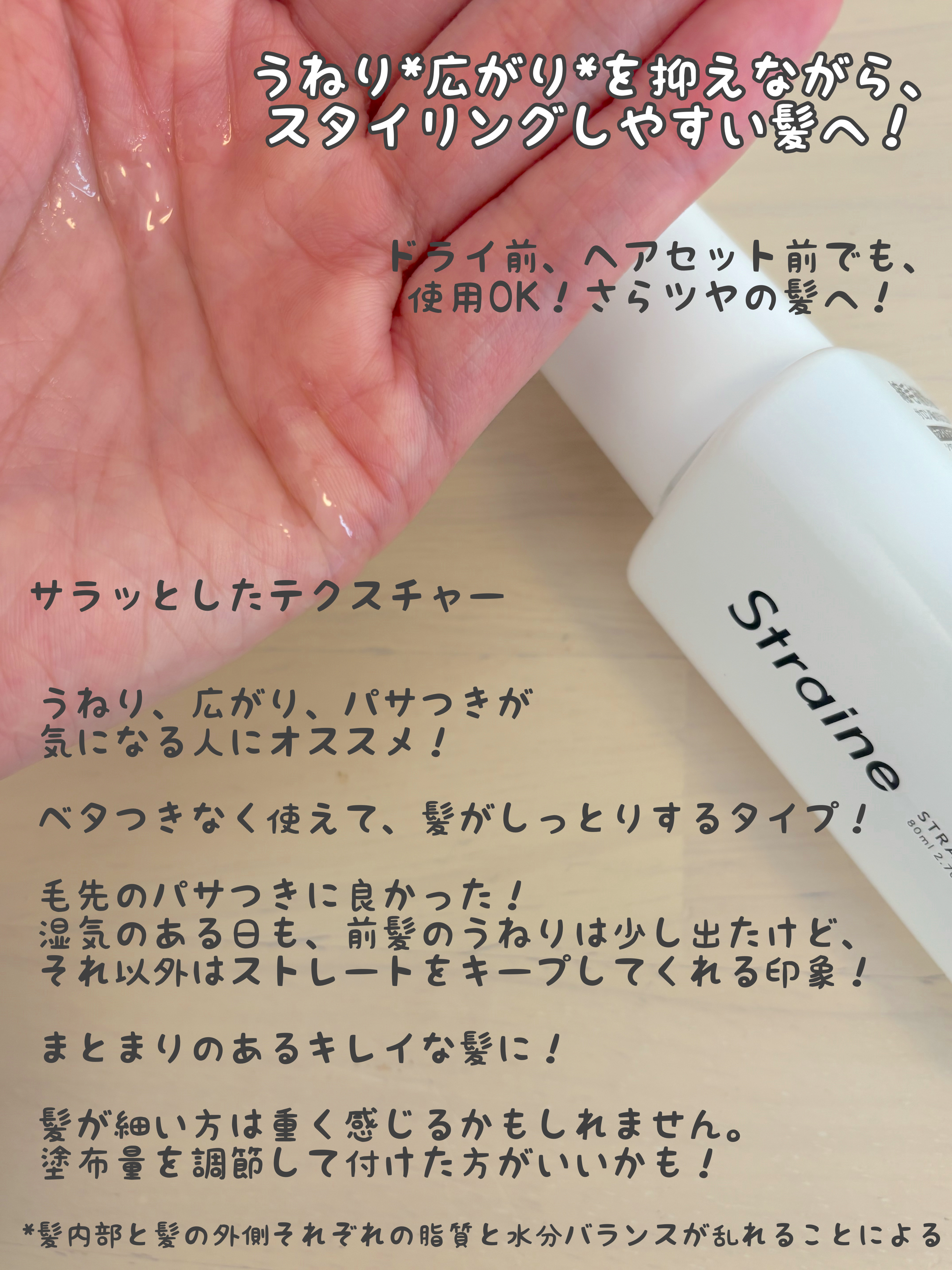 ✼••••✼••••✼Straine(ストレイン)ストレートヘアオイル✼••••✼••••✼「Straine(ストレイン)」さまから商品提供をいただきました。発売後1ヶ月で完売した人気のヘアオイルがついに再入荷!!うねり*や広がり*をケアしな...