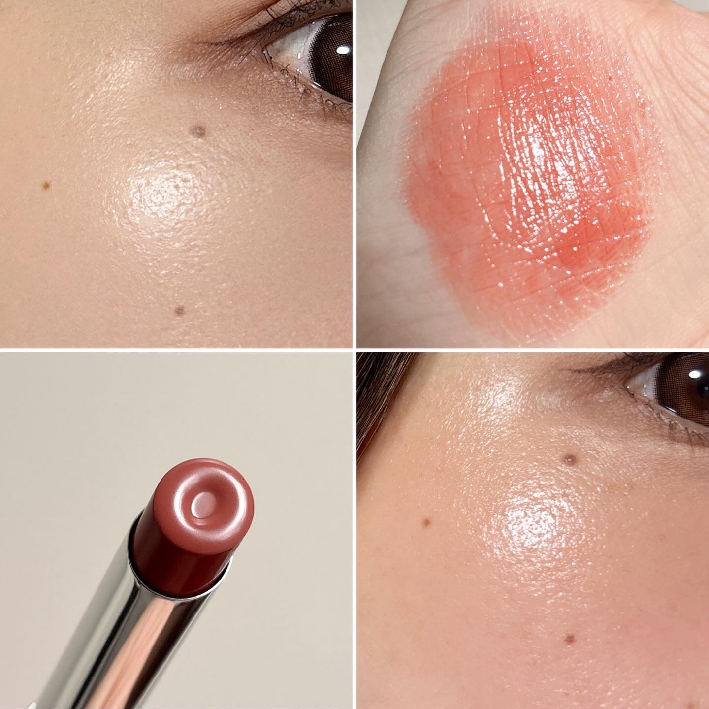 - #スティック型リップ&チーク とろけ出すツヤと蜜感カラー。 唇でもほっぺでも、じゅわり”幸”発色 ・じんわりとろけ出す、やわらかなツヤ 唇の上や指先にのせると、徐々にツヤがやわらかくとろけ出す。 唇はもちろん、指先のツヤを頬にのせてチークとしても。 じゅわりとした統一感のある印象に。 ・べたつきにくく血色感*をON 一度でヘルシーな血色感*とツヤをプラス。 重ねる必要がなく、べたつきにくい。 ・84% 保湿ベースで、むっちり潤う。 潤いも発色も逃さない、蜜感カラー 全10色 リッチなのに透け感もある、まるで蜜のような発色と潤い。 *メイクアップ効果による
