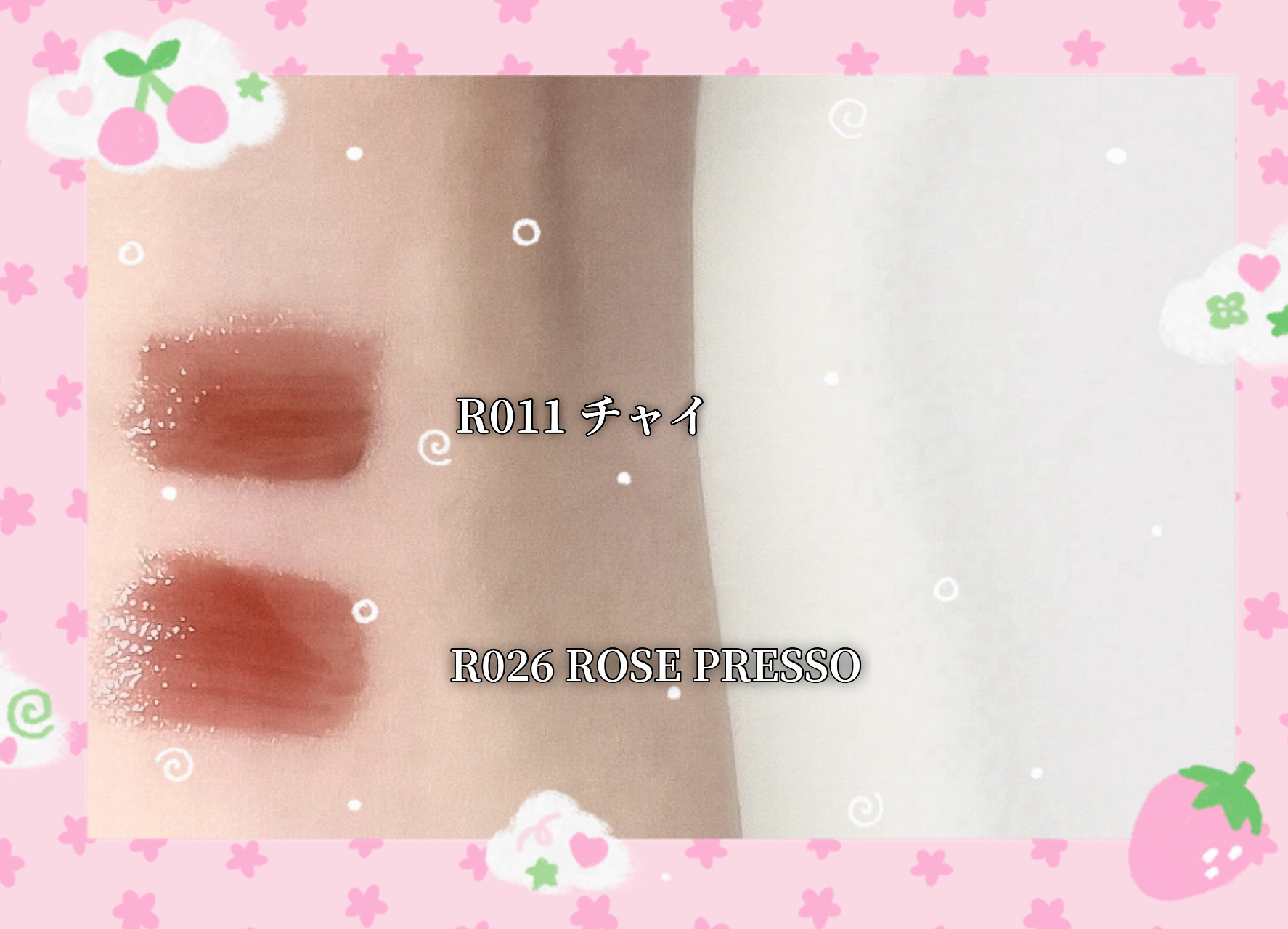 - <R001 ベア> 水、ジフェニルジメチコン、オクチルドデカノール、ビスジグリセリルポリアシルアジペート-2、リンゴ酸ジイソステアリル、トリメチルシロキシフェニルジメチコン、水添ポリイソブテン、ジグリセリン、ポリソルベート60、BG、セチルPEG/PPG-10/1ジメチコン、1,2-ヘキサンジオール、ペンチレングリコール、(アクリル酸ヒドロキシエチル/アクリロイルジメチルタウリンNa)コポリマー、セテアレス-20、スクワラン、フェノキシエタノール、酸化チタン、香料、エチルヘキシルグリセリン、黄5、赤227、イソステアリン酸ソルビタン、水酸化Al、ポリアクリル酸アンモニウム、酢酸トコフェロール、黄4、青1、ヒアルロン酸Na、(アルギニン/リシン)ポリペプチド、加水分解ヒアルロン酸、トコフェロール、アセチルヒアルロン酸Na、ソルビン酸 <R002 ロウローズ> 水、ジフェニルジメチコン、オクチルドデカノール、ビスジグリセリルポリアシルアジペート-2、リンゴ酸ジイソステアリル、トリメチルシロキシフェニルジメチコン、水添ポリイソブテン、ジグリセリン、ポリソルベート60、BG、セチルPEG/PPG-10/1ジメチコン、1,2-ヘキサンジオール、ペンチレングリコール、(アクリル酸ヒドロキシエチル/アクリロイルジメチルタウリンNa)コポリマー、セテアレス-20、スクワラン、フェノキシエタノール、酸化チタン、香料、エチルヘキシルグリセリン、黄5、赤227、イソステアリン酸ソルビタン、酢酸トコフェロール、水酸化Al、ポリアクリル酸アンモニウム、ヒアルロン酸Na、青1、加水分解ヒアルロン酸、(アルギニン/リシン)ポリペプチド、トコフェロール、アセチルヒアルロン酸Na、ソルビン酸 <R003 ロウプリコット> 水、ジフェニルジメチコン、オクチルドデカノール、ビスジグリセリルポリアシルアジペート-2、リンゴ酸ジイソステアリル、トリメチルシロキシフェニルジメチコン、水添ポリイソブテン、ジグリセリン、ポリソルベート60、BG、セチルPEG/PPG-10/1ジメチコン、1,2-ヘキサンジオール、ペンチレングリコール、(アクリル酸ヒドロキシエチル/アクリロイルジメチルタウリンNa)コポリマー、セテアレス-20、スクワラン、フェノキシエタノール、香料、エチルヘキシルグリセリン、酸化チタン、黄5、イソステアリン酸ソルビタン、赤227、酢酸トコフェロール、ヒアルロン酸Na、水酸化Al、ポリアクリル酸アンモニウム、加水分解ヒアルロン酸、青1、(アルギニン/リシン)ポリペプチド、トコフェロール、アセチルヒアルロン酸Na、ソルビン酸 <R004 フィーバー> 水、ジフェニルジメチコン、オクチルドデカノール、リンゴ酸ジイソステアリル、ビスジグリセリルポリアシルアジペート-2、トリメチルシロキシフェニルジメチコン、水添ポリイソブテン、ジグリセリン、ポリソルベート60、BG、セチルPEG/PPG-10/1ジメチコン、1,2-ヘキサンジオール、ペンチレングリコール、(アクリル酸ヒドロキシエチル/アクリロイルジメチルタウリンNa)コポリマー、セテアレス-20、スクワラン、フェノキシエタノール、香料、エチルヘキシルグリセリン、黄5、赤227、イソステアリン酸ソルビタン、酢酸トコフェロール、ヒアルロン酸Na、加水分解ヒアルロン酸、(アルギニン/リシン)ポリペプチド、トコフェロール、アセチルヒアルロン酸Na、ソルビン酸 <R005 ハイビスカス> 水、ジフェニルジメチコン、オクチルドデカノール、ビスジグリセリルポリアシルアジペート-2、リンゴ酸ジイソステアリル、トリメチルシロキシフェニルジメチコン、水添ポリイソブテン、ジグリセリン、ポリソルベート60、BG、セチルPEG/PPG-10/1ジメチコン、1,2-ヘキサンジオール、ペンチレングリコール、アクリル酸ヒドロキシエチル/アクリロイルジメチルタウリンNa)コポリマー、セテアレス-20、スクワラン、フェノキシエタノール、香料、エチルヘキシルグリセリン、赤227、黄5、イソステアリン酸ソルビタン、赤104(1)、酢酸トコフェロール、ヒアルロン酸Na、加水分解ヒアルロン酸、(アルギニン/リシン)ポリペプチド、トコフェロール、アセチルヒアルロン酸Na、ソルビン酸 <R006 ロウグレープ> 水、ジフェニルジメチコン、ビスジグリセリルポリアシルアジペート-2、リンゴ酸ジイソステアリル、オクチルドデカノール、トリメチルシロキシフェニルジメチコン、水添ポリイソブテン、ジグリセリン、ポリソルベート60、BG、セチルPEG/PPG-10/1ジメチコン、1,2-ヘキサンジオール、ペンチレングリコール、(アクリル酸ヒドロキシエチル/アクリロイルジメチルタウリンNa)コポリマー、セテアレス-20、スクワラン、酸化チタン、フェノキシエタノール、香料、エチルヘキシルグリセリン、黄5、赤227、イソステアリン酸ソルビタン、水酸化Al、ポリアクリル酸アンモニウム、酢酸トコフェロール、ヒアルロン酸Na、青1、加水分解ヒアルロン酸、(アルギニン/リシン)ポリペプチド、トコフェロール、アセチルヒアルロン酸Na、ソルビン酸 <R007 チル> 水、ジフェニルジメチコン、オクチルドデカノール、ビスジ