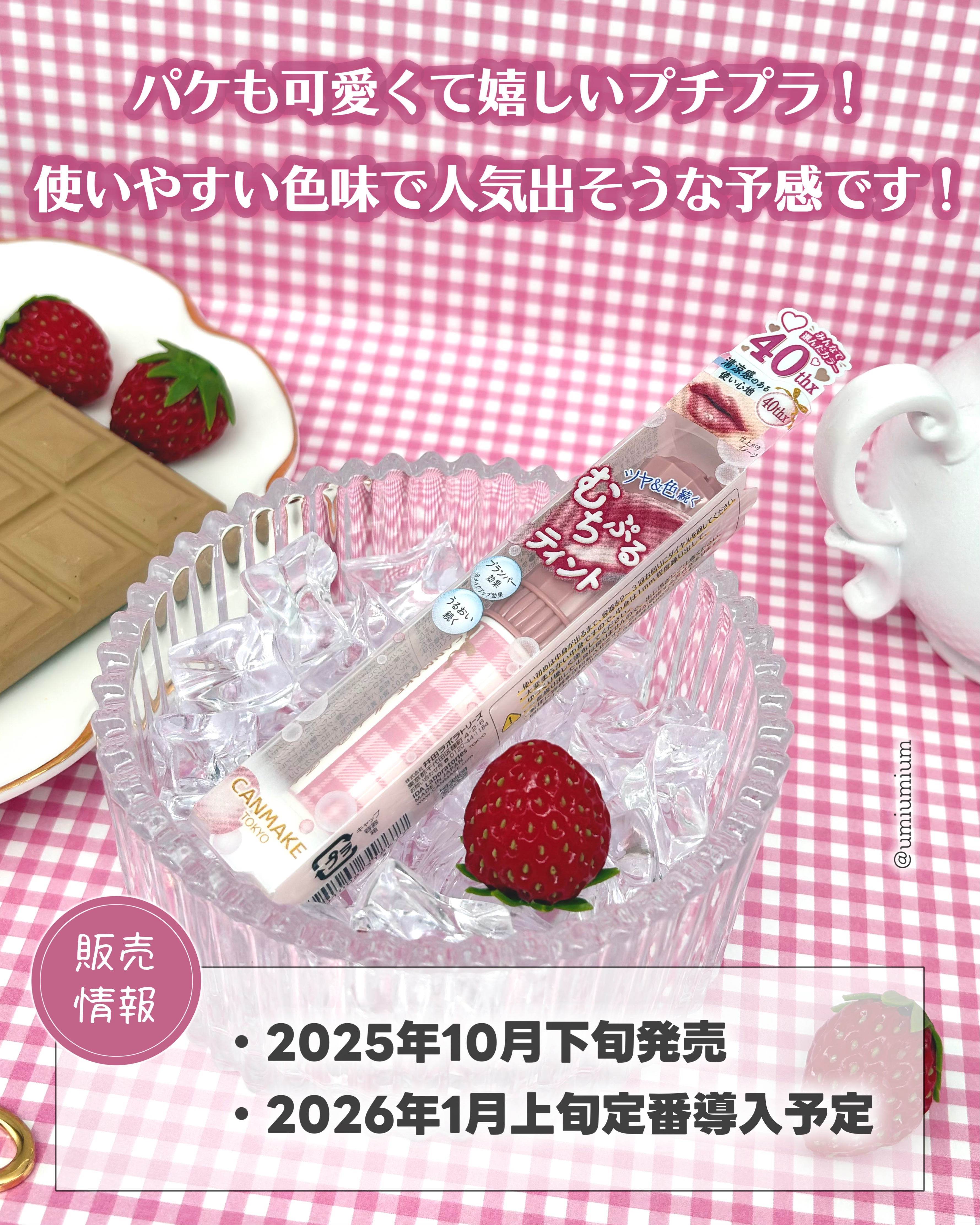 「キャンメイク」さまから商品提供をいただきました。キャンメイクむちぷるティント40thxストロベリーボンボン¥77040周年記念カラーの「40thxストロベリーボンボン」🍓クリーミーなピンクベージュで、白浮きしにくく粘膜に馴染みます👀艶感もあ...