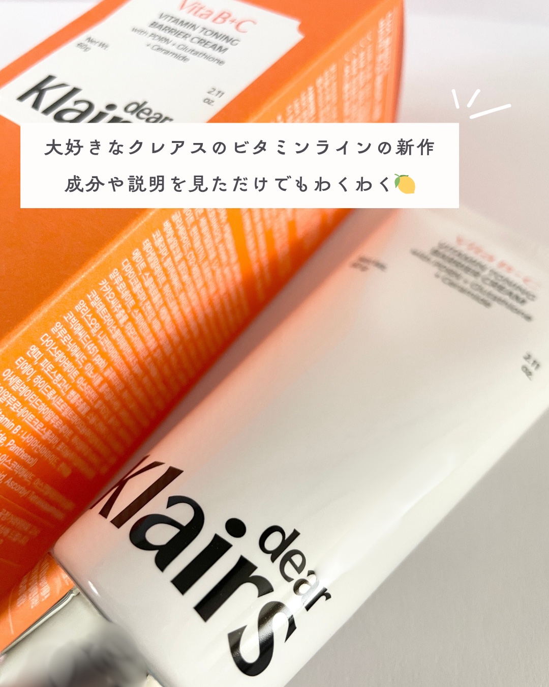 ご覧頂きありがとうございます😊@klairs.jp様より大人気のビタミンラインから新登場の商品をご提供頂きました🩷【PDRNビタグルバリアクリーム】こんな方にオススメ✨*一瞬の明るさじゃなく、根本から変えたい*敏感でゆらぎやすい肌、シミやハリ...