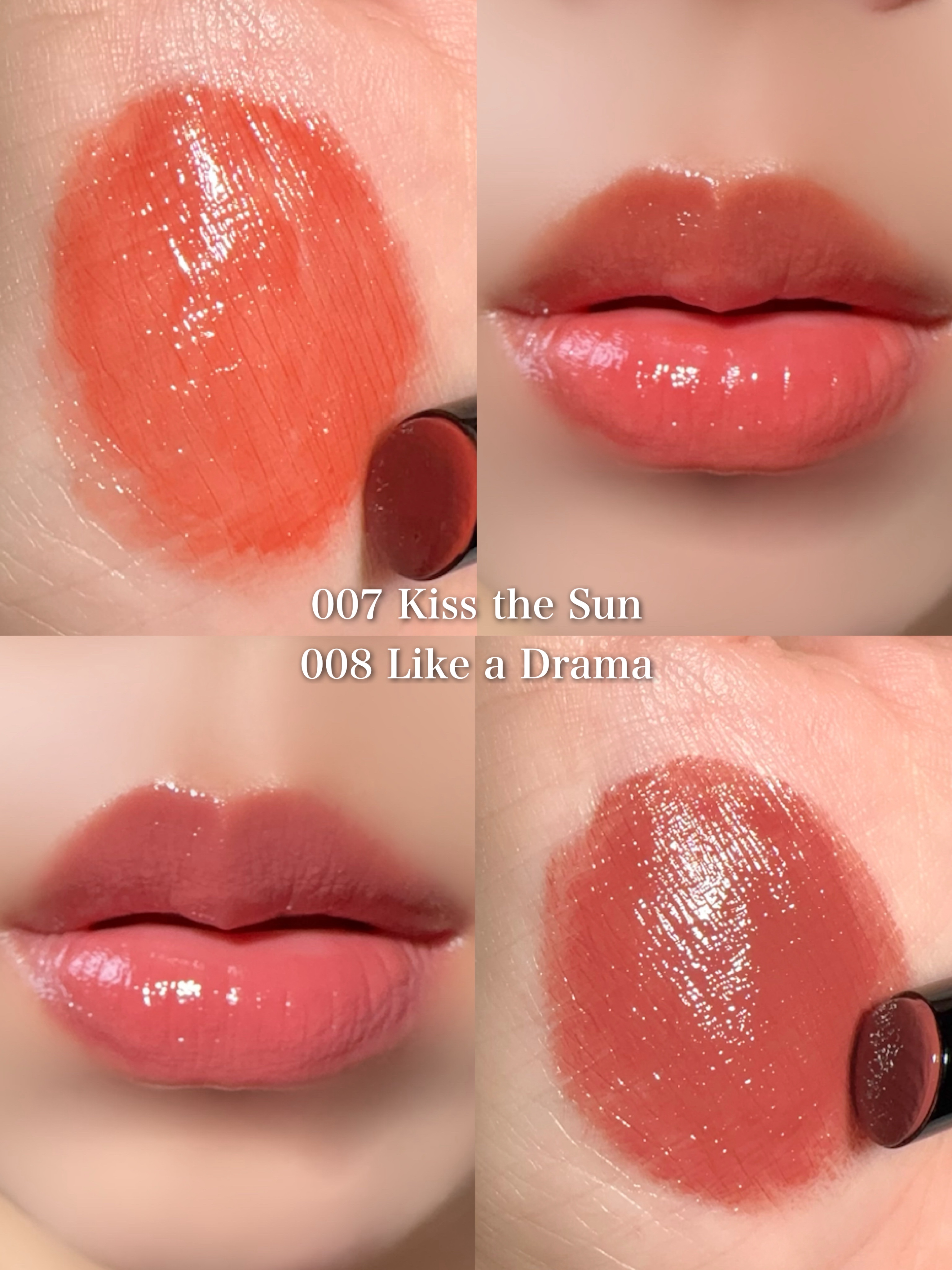 ねっちょりボリューム感あるテクスチャーだけど、ベタつきなく使いやすい。 ティントじゃない普通のグロスだから色もちは良くない。 発色ナチュラルだからこれだけでもいいけど、他のリップと合わせても可愛い!!