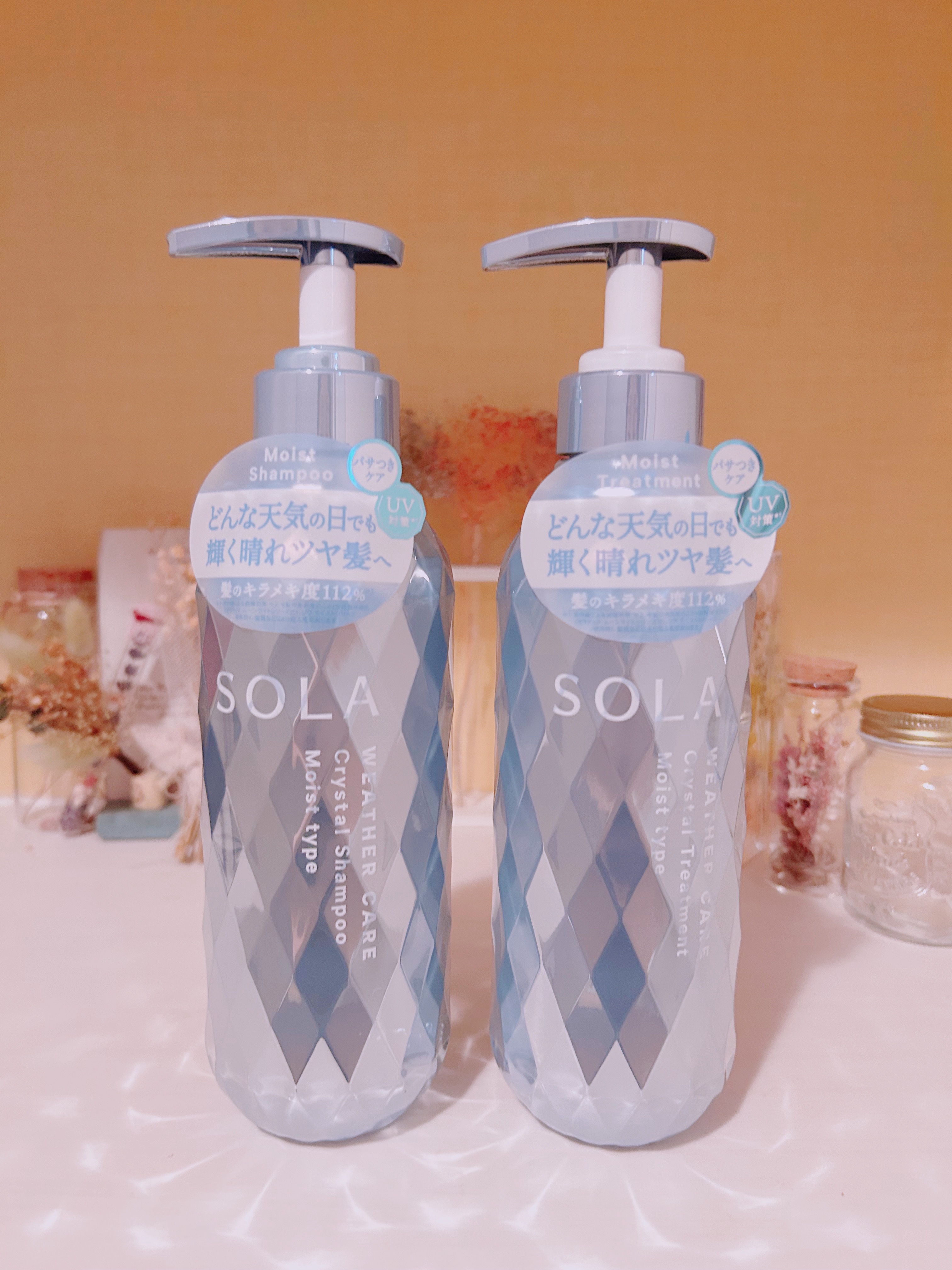 SOLAWEATHERCAREクリスタルシャンプー/ヘアトリートメントモイストタイプを使用しました😊どんな天気の日でも、輝く晴れツヤ髪へ導くウェザーケアブランドです。SOLAWEATHERCAREは天候による髪の悩みに着目し、独自のウェザーケ...