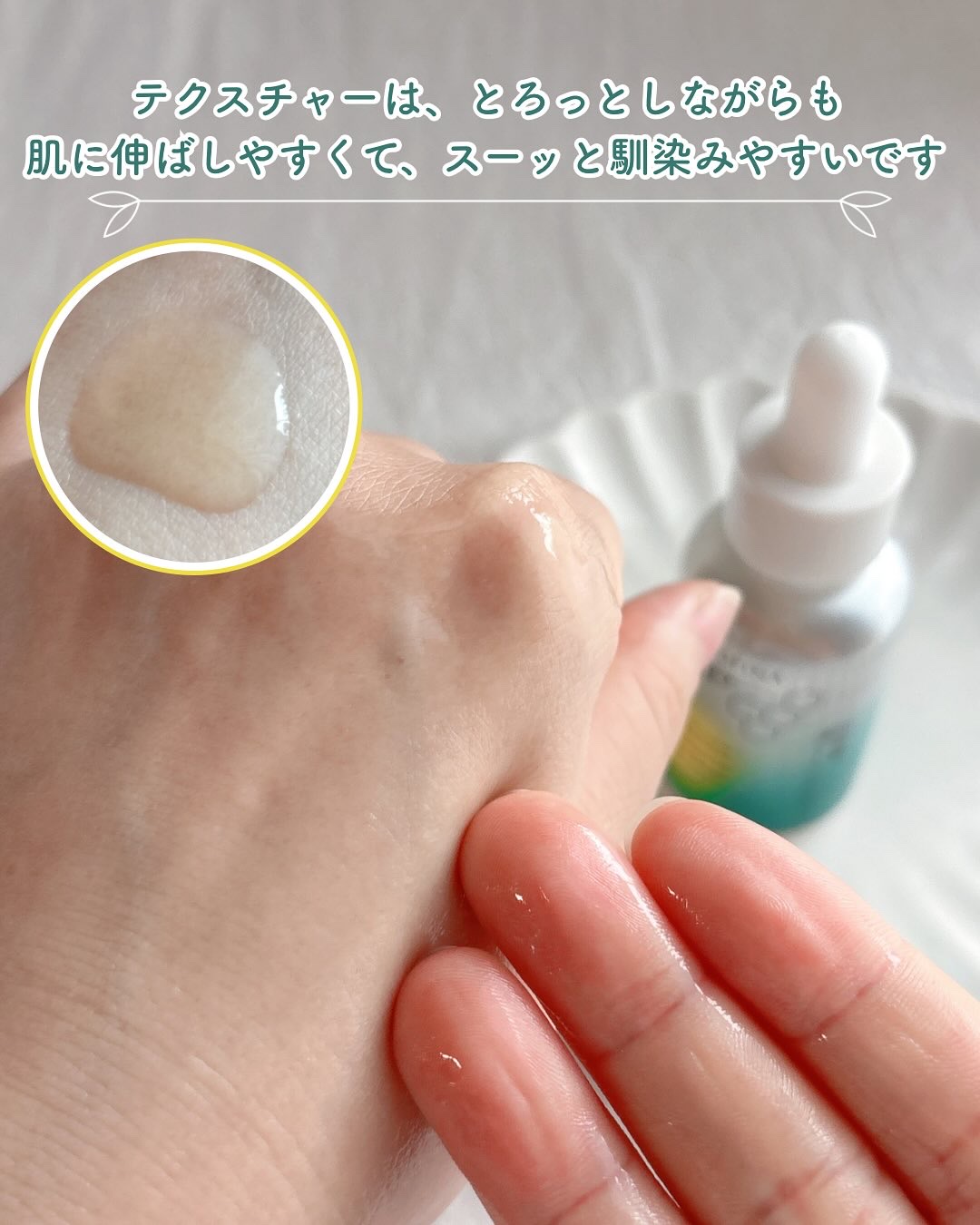 | 濃密なジェルのようなテクスチャーがスルスルとのびて馴染みます | 詳細を見る | |