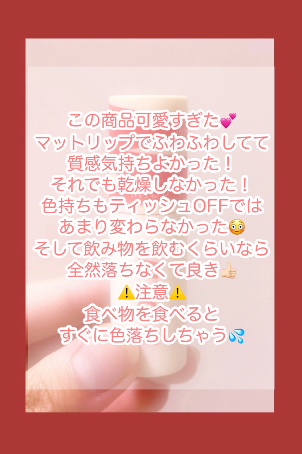 | ふんわり柔らかなつけ心地のもちもちリップ。しっとりした仕上がりなので、マット使ったことない人も試しやすいと思う◎ | 詳細を見る |