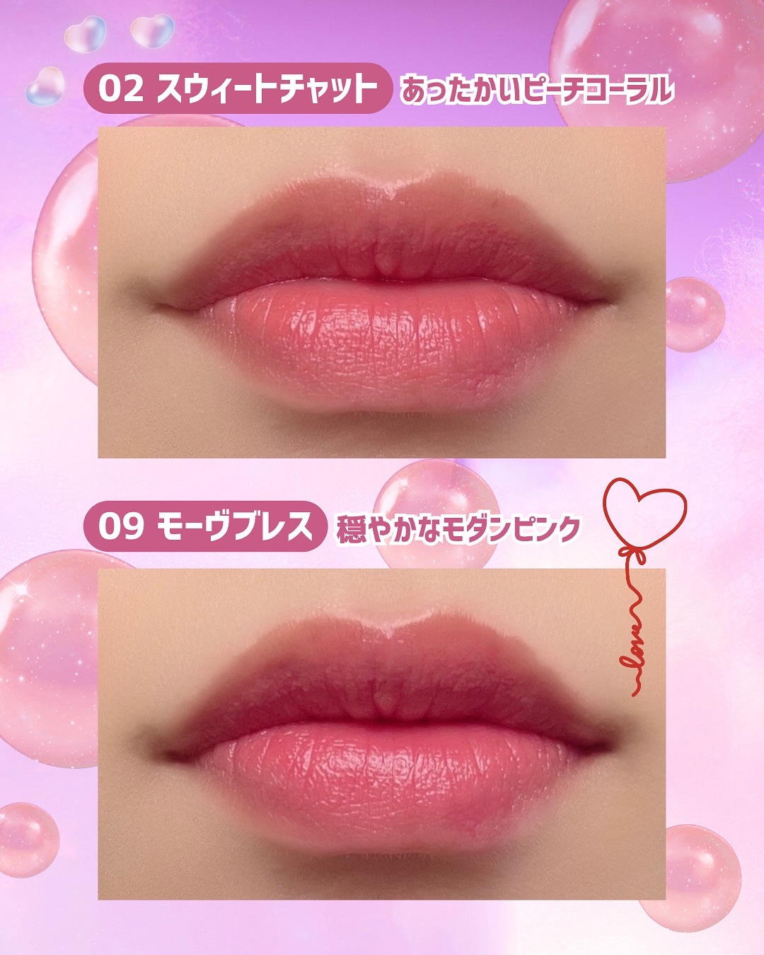- 塗るたびに、ときめきが走り出す。メイクの楽しさを加速する「#止まらぬリップ」。 肌なじみのいい発色と自然なツヤで今っぽい唇に仕上がる、10色展開。 うるおいをチャージして、ほんのり血色感*¹をじゅわりと与えます。 どんな時でも使いやすい軽やかな塗り心地で、なりたい私を叶える仕上がりに! 【POINT】 ■ヘルシーに魅せる#MLBHリップ 「MLBH =MY LIPS BUT HEALTHIER」。自然なツヤとカラーで、いつもの唇がもっと健康的な印象に見える仕上がりに! ■〝今っぽさ〞を叶える自然なツヤめき ツヤと血色感*¹がほどよく両立。ラズベリーシードオイル*²配合で、うるおいを守りながらツヤめく唇に。 ■軽く均一にフィット。チークにも◎ ひと塗りでムラを防いでフィットし、自然な血色感*¹をプラス。チークにも使えます。 *1 メイクアップ効果による *2 (ラズベリー種子油/コハク酸トコフェロール)アミノプロパンジオールエステルズ(整肌成分)