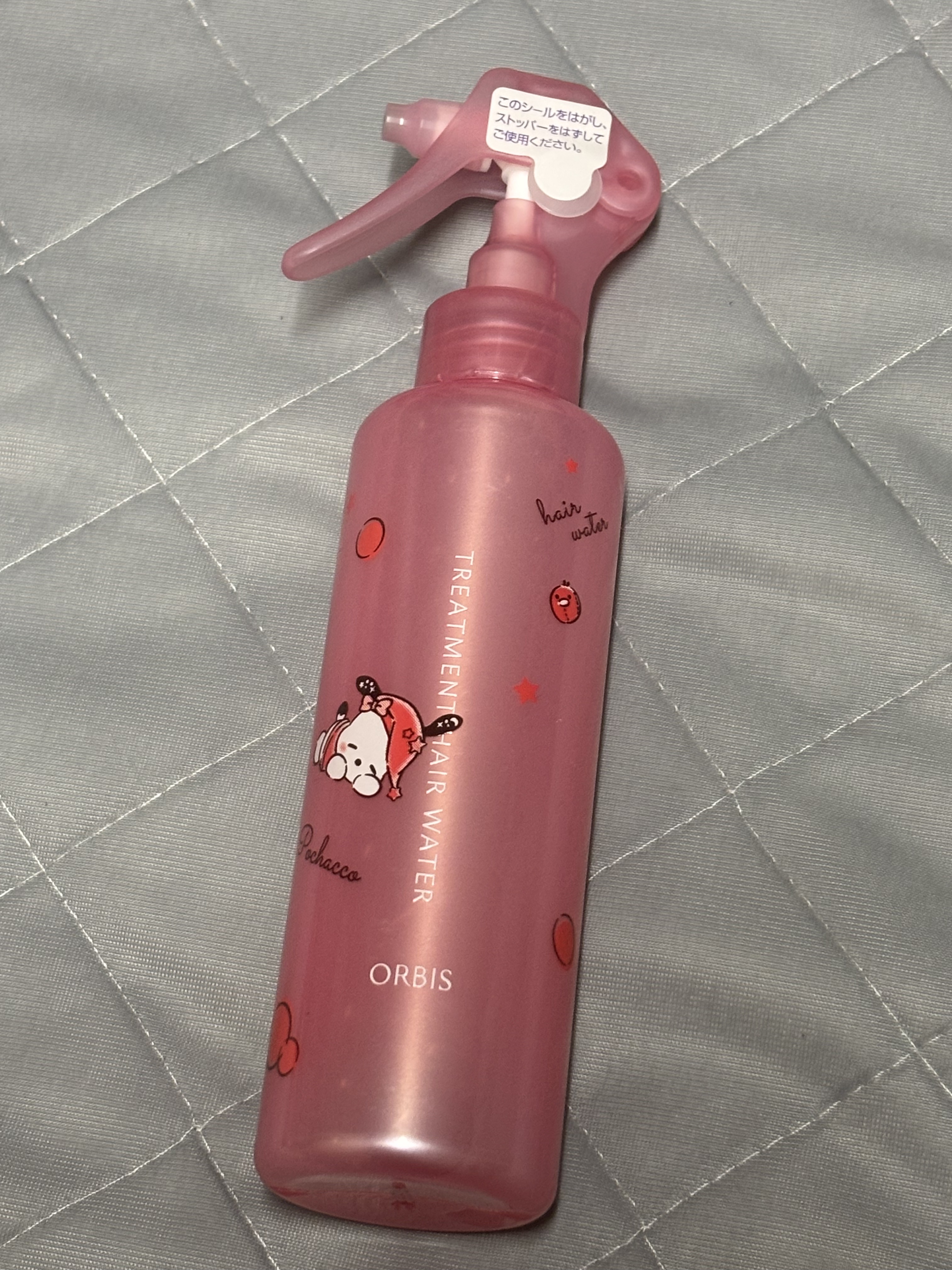 \サンリオコラボの限定ボトル/【ORBISトリートメントヘアウォーター】☑️180ml¥1.100ずっとリピし続けているヘアウォーターで、詰め替え用を購入してたけど、ポチャッコが可愛くてパケ買いしちゃったよね♡朝の寝癖が爆発がひどくても、シュ...