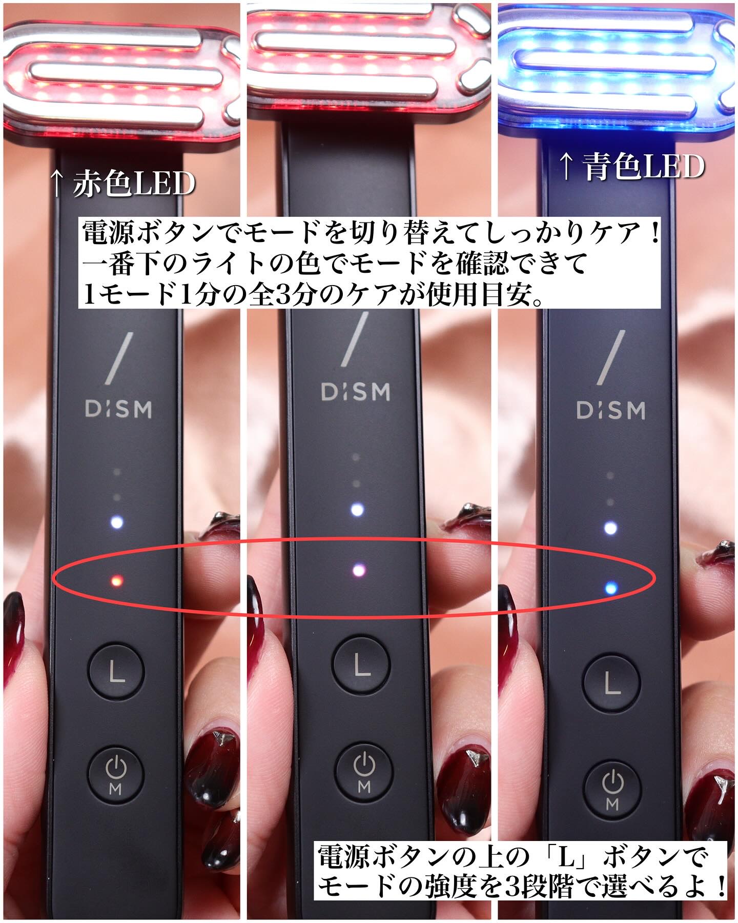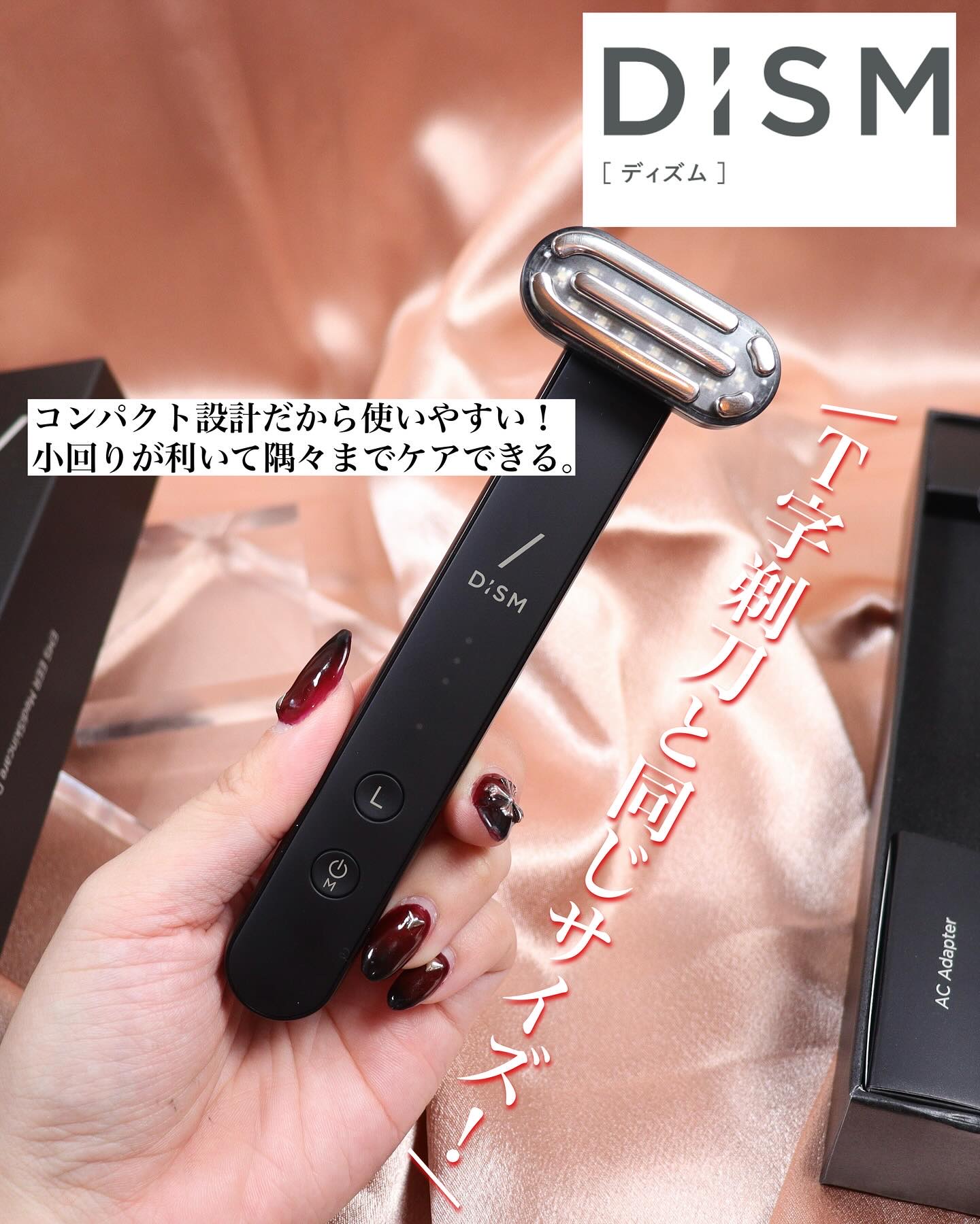 DISMから美容医療発想のメディケア美顔器が新登場💎✨ スリムで軽くてコンパクトサイズなのに多機能✨ 世界初*1うるおい浸透*2機能、EER*3モードが搭載されていて、使った後の肌仕上がりがすごく良くてゲットしてよかった美顔器だよ🖤🩶 8つも機能がある美顔器💎 EMS/EER*3 /RF*4/バイブレーション マイクロカレント/赤色LED/青色LED/温感
