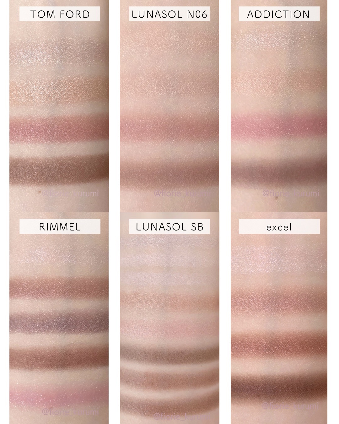 TOM FORD BEAUTY アイ カラー クォード 01RE ローズ エクスポーズド ¥12,980 エクセル スキニーリッチシャドウ SR07 マグノリアブラウン ¥1,650 まずパレットをぱっと見では左下がちょっと違うけど全体的に似てる色味って感じでしたが