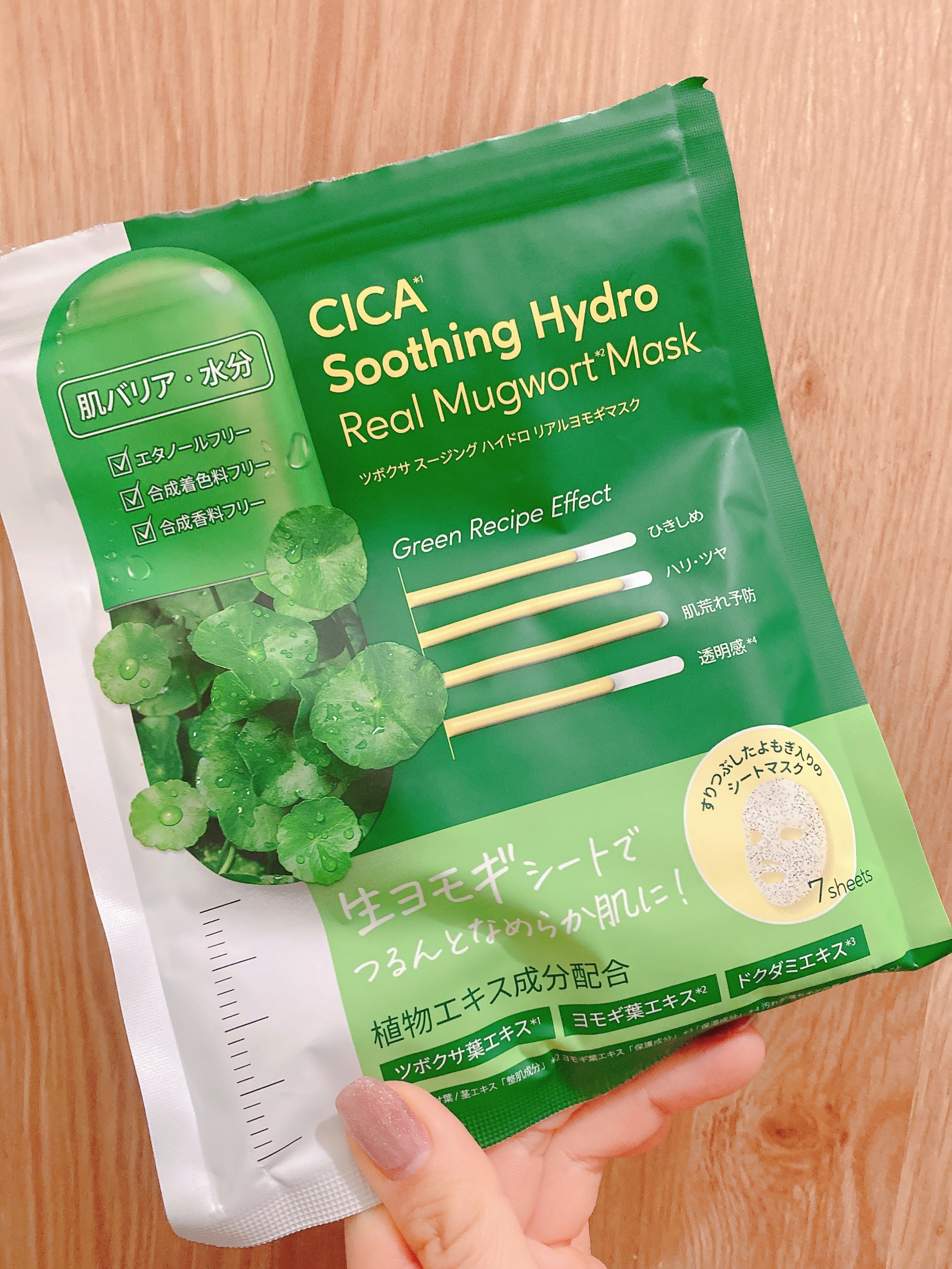 リアラスターツボクサスージングハイドロリアルヨモギマスク(7枚入り)最近美容液など使って他アイテムも気になっていたリアラスターのフェイスマスク!いろんなマスクがある中、なかなか個性的なタイプで面白い。出してみると、ヨモギの葉がついています!シ...
