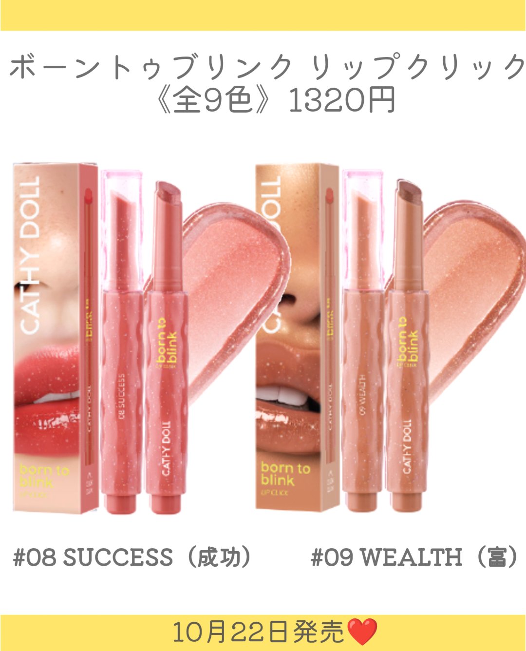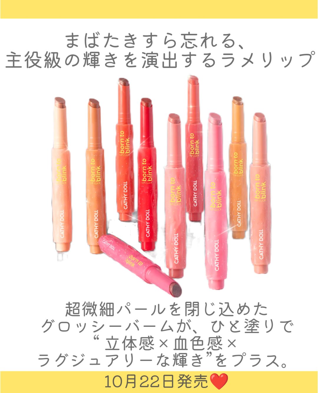 かわいすぎ!主役級キラキラリップ💋◾︎CATHYDOLL(キャシードール)◾︎ボーントゥブリンクリップクリック主役級の輝きを演出するラメリップ「ボーントゥブリンクリップクリック」透明感あふれるクリアな光沢感!どの角度からも繊細な煌めきを感じる...