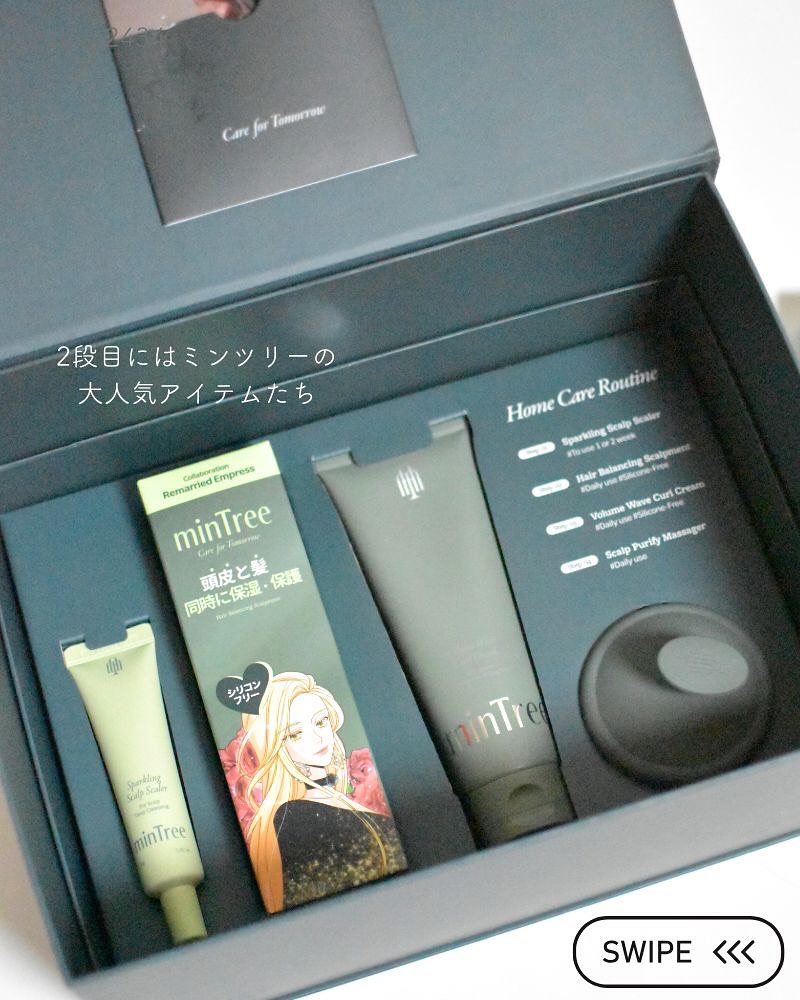 ミンツリー「再婚承認を要求します」×ミンツリースペシャルパッケージボックスが登場💚ナビエみたいな、ツヤツヤの髪の毛になるには頭皮ケアも大事☝️ということで、頭皮ケアにおすすめのアイテムがセットになりました!✨▶︎ヘアバランシングスカルプメント...