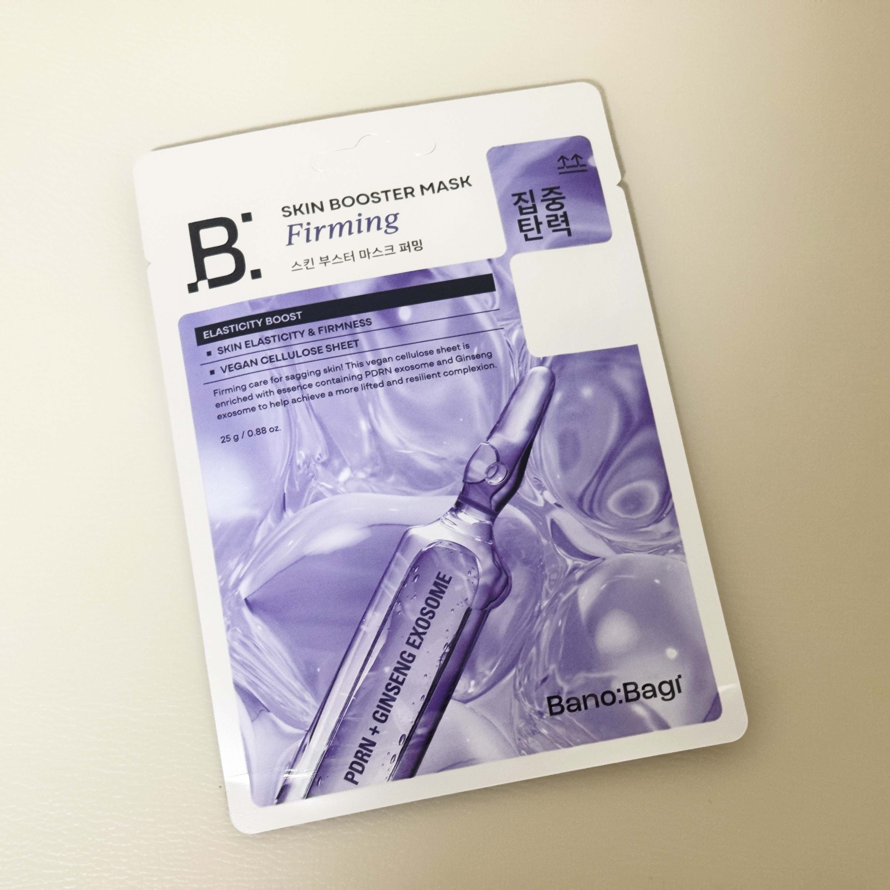 スキンブースターマスク4種類(モイスチャー、ポアケア、ブライトニング、ファーミング)BANOBAGI様からいただきましたPDRNxエクソソーム配合のフェイスマスク洗顔後トナーで整えてから使用しますシートはリヨセルと竹の長所を組み合わせたという...
