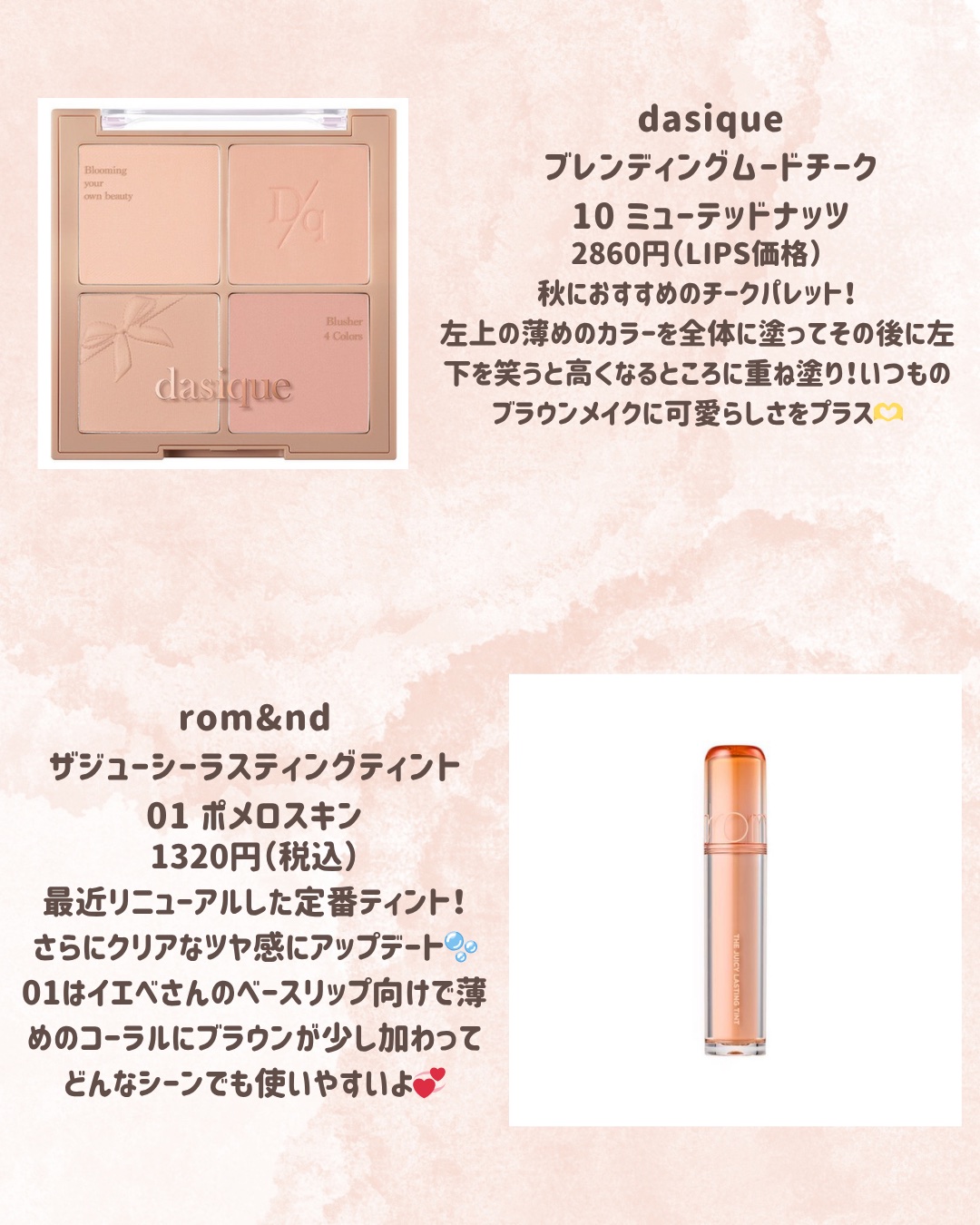 | チークランキング第4位 | しっとりとした質感で肌に馴染みます♪ 季節やパーソナルカラー問わず使えそう❤︎ | 詳細を見る | |