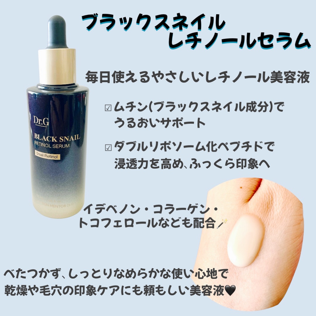Dr.G(@drg_jp_official)様より🐌ブラックスネイルレチノールセラム🐌ブラックスネイルクリームスネイルのねばりでハリのあるツヤ肌へ✨芳醇な香り🤍年齢肌のケアにも🙌#drg#DrG#ドクタージー#メガ割#エイジングケア#かたつむ...