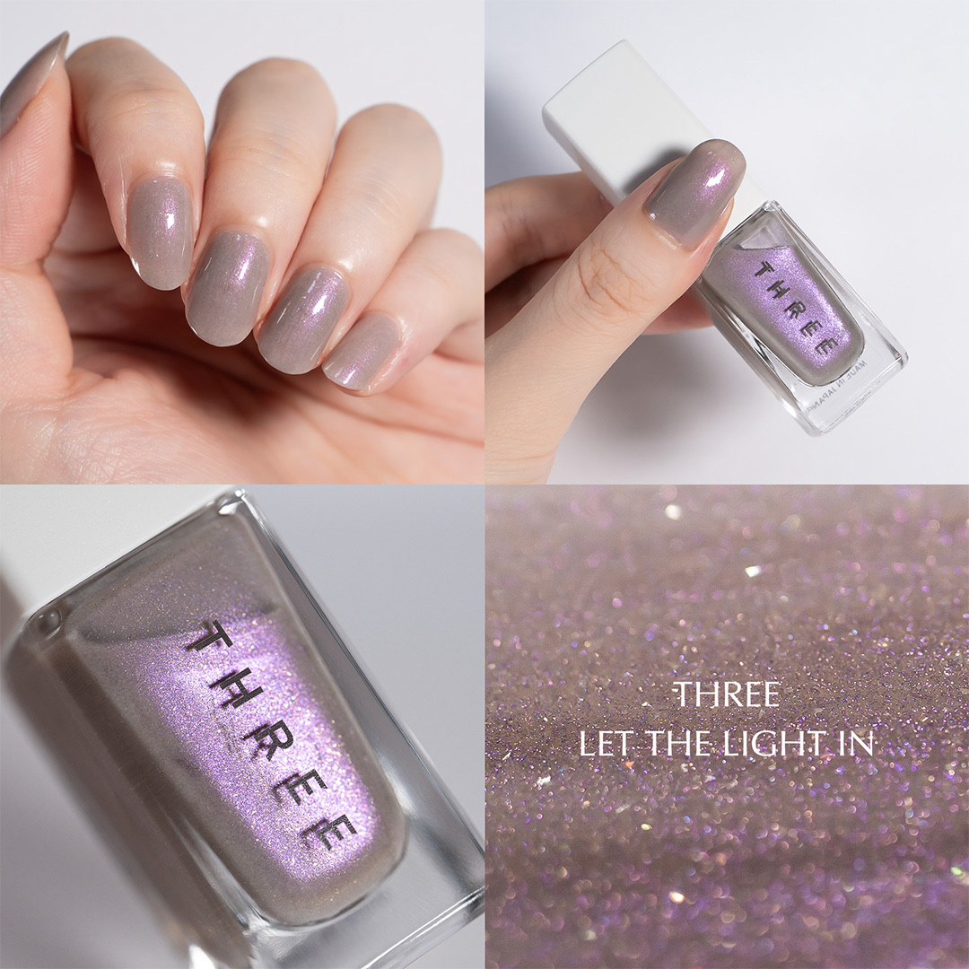 - 2024年夏、新しく生まれ変わるTHREEのネイルコレクション。 2色を組み合わせるデュオカラーレンジで楽しむ、ロングラスティング、速乾、アンストレス処方*のネイルラッカー。 クリア、ミルキー、グレイッシュとさまざまな発色。微細な輝きを放つニュアンスカラーのパール、もしくはノンパール。 ヴィヴィッドからニュートラルまで、フルイディティあふれる色の個性を存分に引き出すテクスチャーと輝き。 一度塗りでシアーに、二度塗りで深みと鮮やかさが増し、美しいツヤと光沢感を指先に彩る、ネイルラッカーが誕生します。 爪の呼吸を妨げない酸素透過性処方、ロングラスティングと速乾性、そしてベースコート不要で塗り重ねる手間からも解放し、進化。 さらに、互いの色を引き立て合う2色の「デュオカラーレンジ」で構成し、エフォートレスでモードな組み合わせを実現。 指先で色彩を自由に奏でる、エネルギーに満ちた全2 0色です。 *乾燥が早くストレスに感じにくい処方