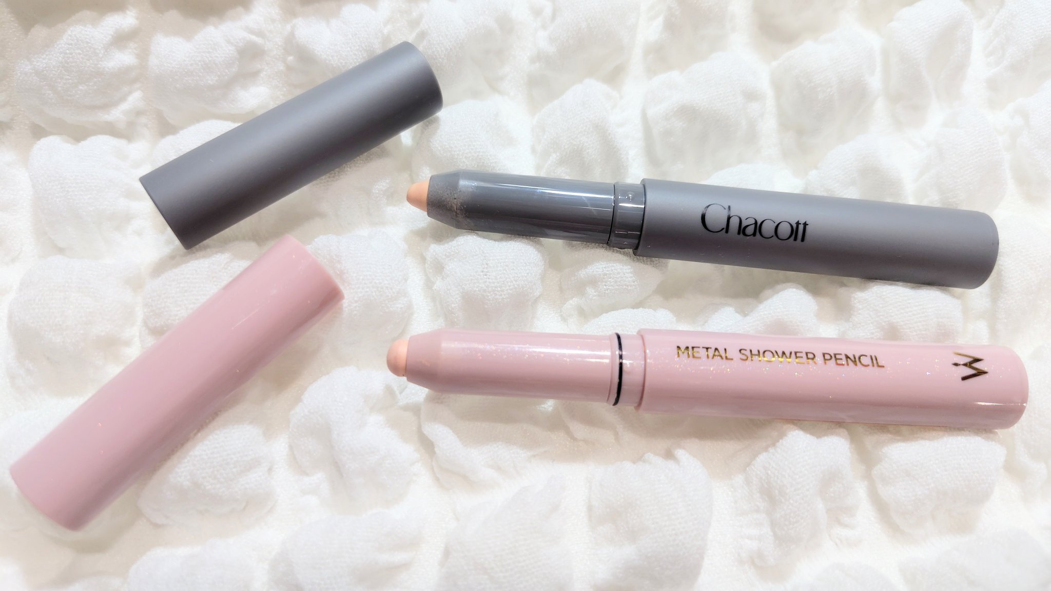 人気涙袋ペンシルから明るめマットベージュが新色で登場🥺 正直言うとこのウォンジョンヨ、メタルシャワーペンシルて最初はパール入りのものが多いシリーズだったが、涙袋て結局、パールよりマットが盛れるのよなあ…と思ってあまり使って来なかったんですが、 今回シンプルな明るめベージュが出てやっと…まさに、こういうのを待っていたのよ、、 軽い力でスルスル塗れるのは改めていいなぁと思いつつ、マットはハッキリめに色が出るので、はみ出るとやや目立つ、、これ太めなので今さらではあるが、もう少しだけ細くしてほしい😂😂