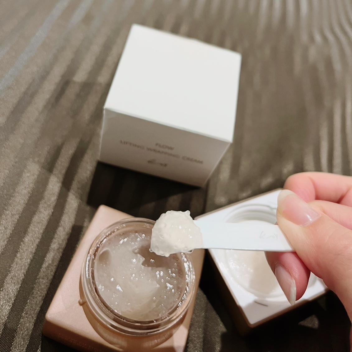 シートマスクとスリーピングマスクがセットになっていて、使い勝手が良いです しっとりしたシートマスクにとても癒されました。スリーピングマスクはベタつかない半透明のゲルで、お肌を優しく包み込んでくれるので、翌日の肌の弾力が全然違って、化粧ノリもよかったです。