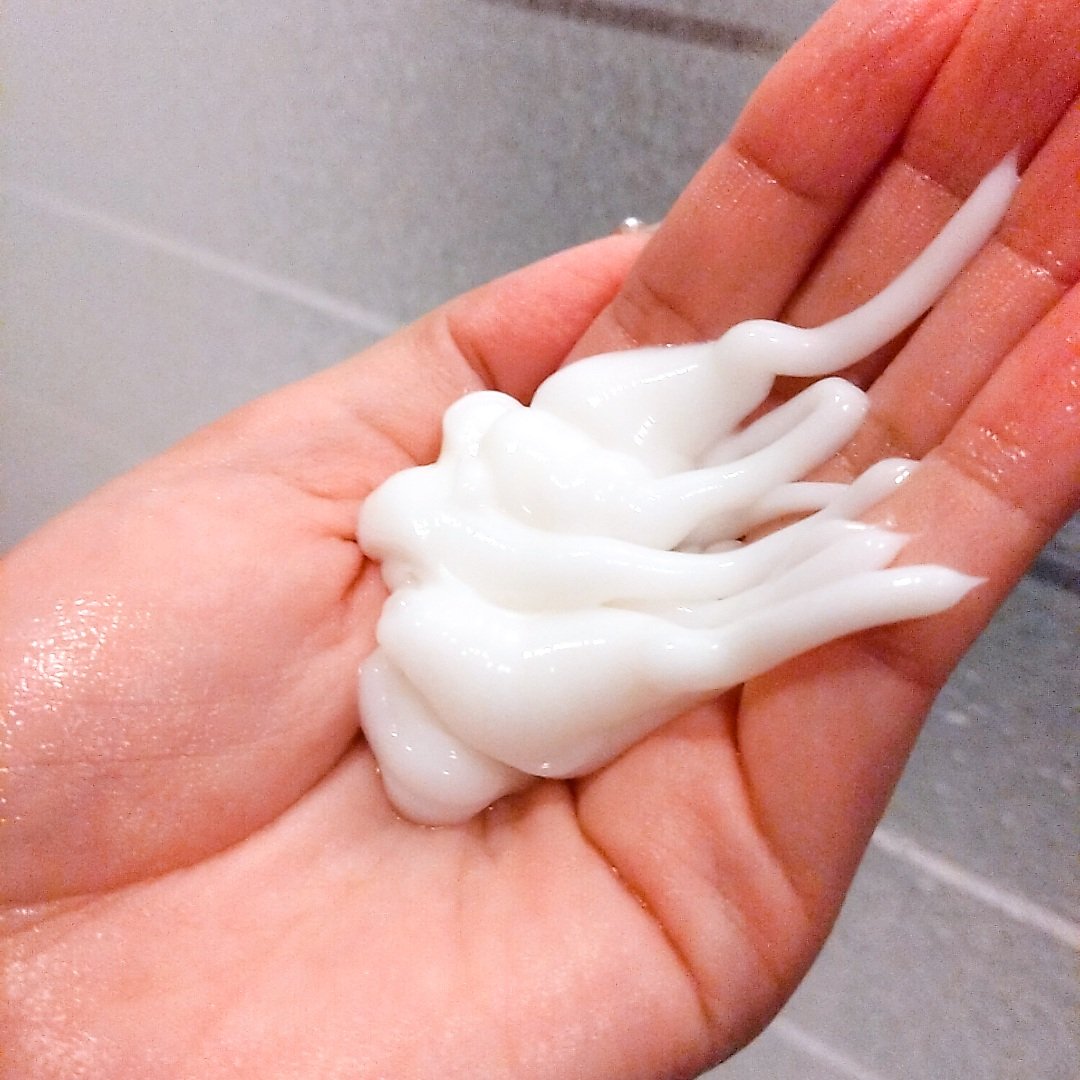 パックもできるボディウォッシュ🫧 マイルドな洗浄成分*配合で泡立てなくても汚れを落とすことができます。 なめらかなテクスチャーのクリームで手のひらで洗うととろ〜りとしたクリームの触り心地が気持ちいい。 香りは気分が華やかになるようなローズの香りでバスルームが心地よい気分に✨