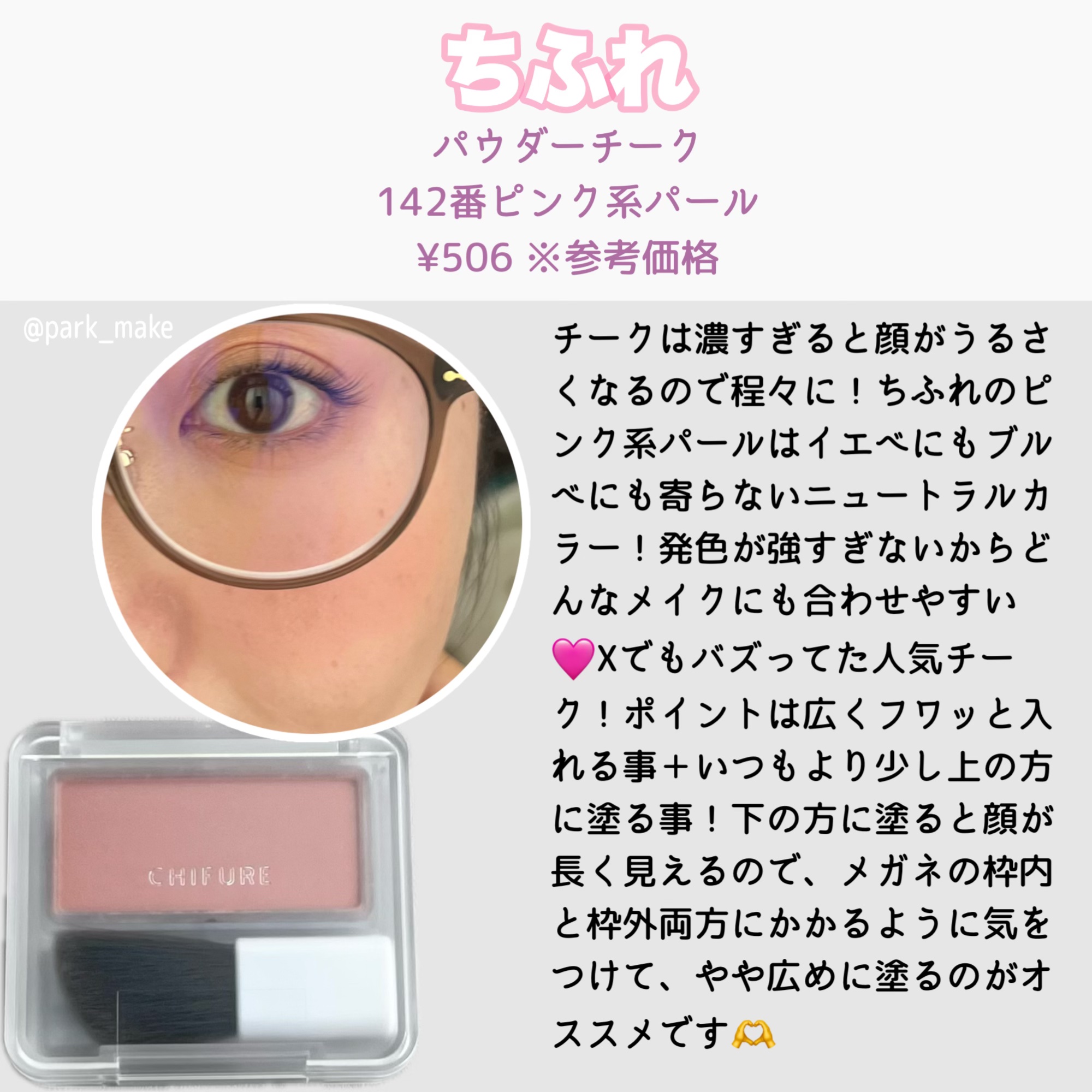 \\ちふれ パウダーチーク//昨日のセザンヌチークの投稿はこちらから→https://lipscosme.com/posts/7916797皆さんXの話題の投稿見ましたか?ちふれのパウダーチーク142番ピンク系パールが話題になっているのを見て...