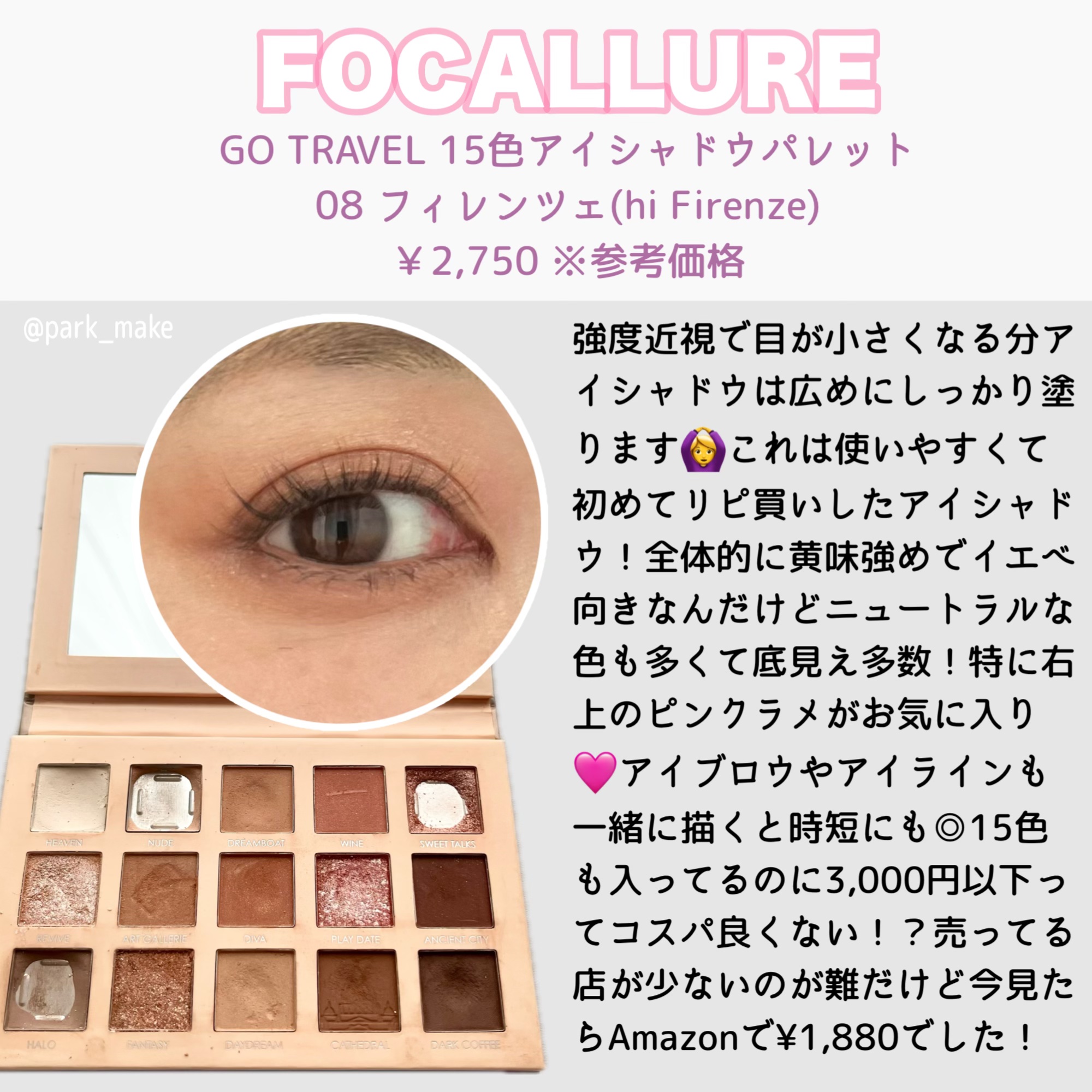 FOCALLURE GO TRAVEL 15色アイシャドウパレット | 2,750円 |
