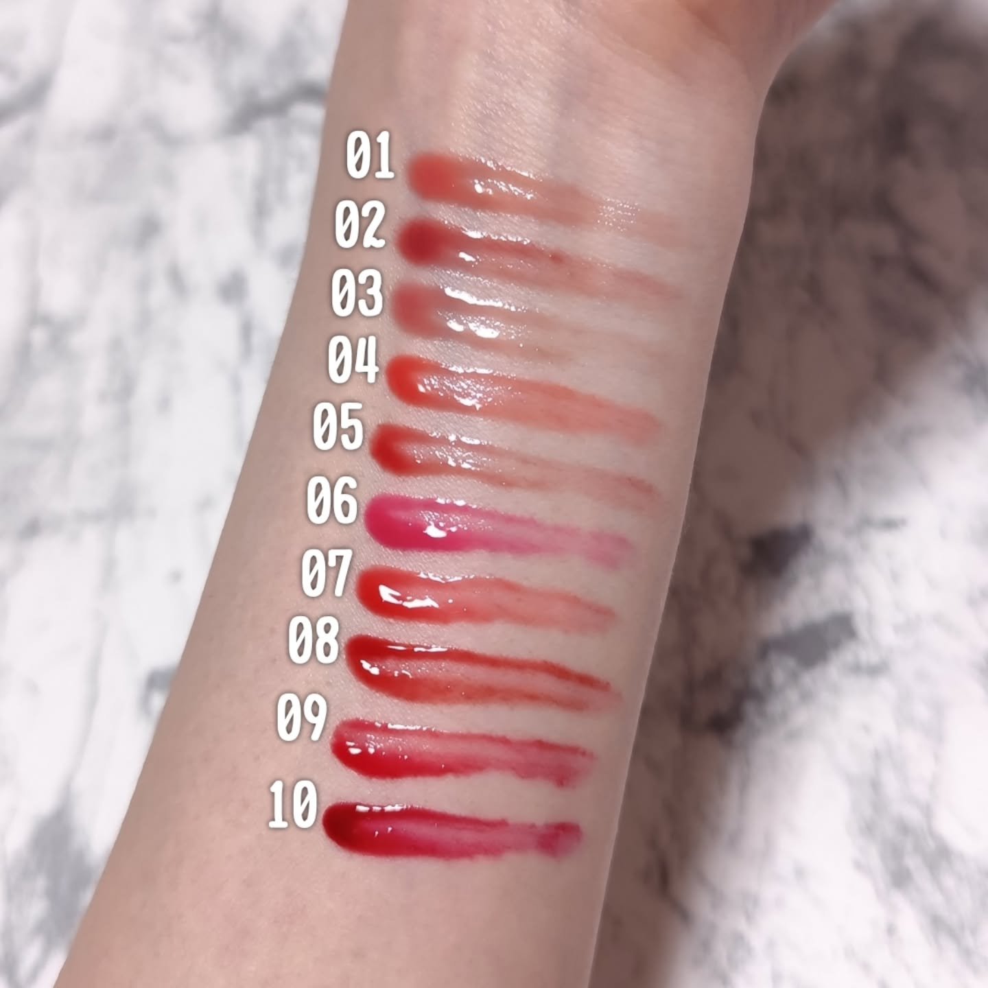 2aNグレイズバウンシングティント💋カラーは全部で14色あり、今回は01~10です🩷01.ヌーディーココ02.ロージーモカ03.レイジー04.ピーチシュ05.バブリー06.ベリーシャワー07.チューイー08.ローズムーン09.キャンディチュー...