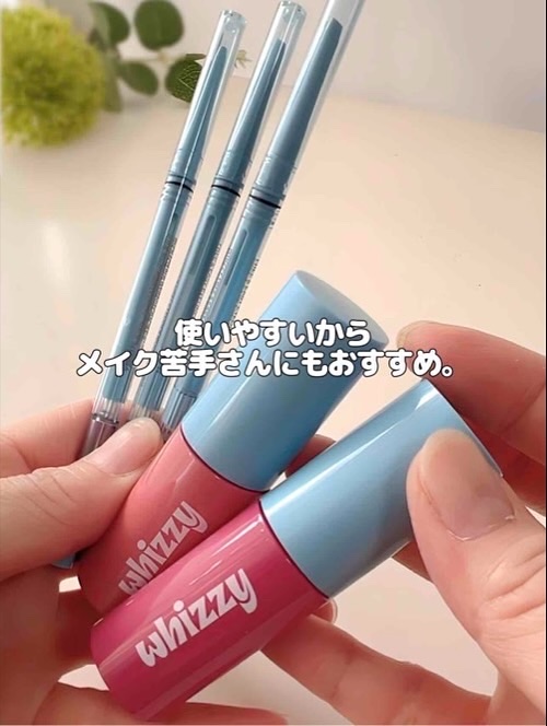 WHIZZYGlowUpTintクラップバック/ブラッシュラッシュ均一に塗れて見たまま発色のリップ😍むちっとした唇に見えて可愛い✨️Free&EasyEyelinerサイレンス(ブラック)/ココア(ブラウン)サトルシャドウ/ムーンリットグロー...