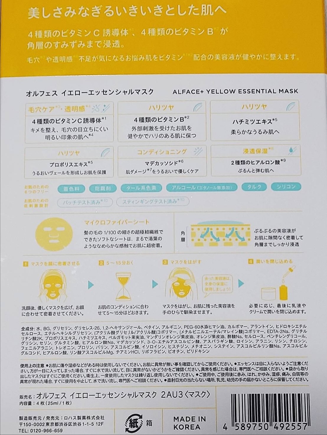 ALFACE+ オルフェス イエローエッセンシャルマスク | 275円 |