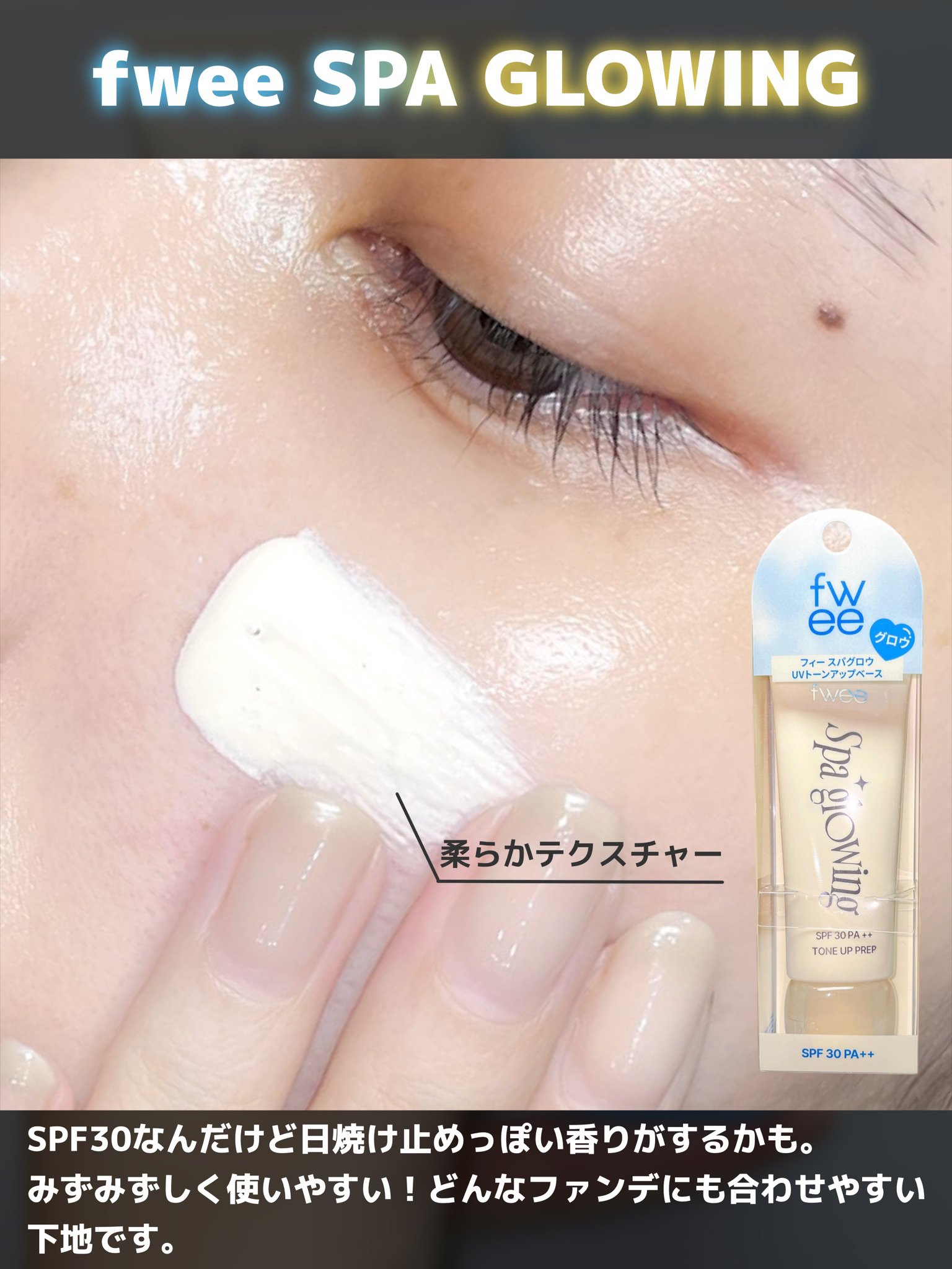 最近流行りの #fweeの下地正直レビューツヤ肌命!の方には02がおすすめ🩵私は乾燥肌だけどカバー力も欲しいから、01と02を手の甲でミックスさせてから使うのにハマってる😆とにかく仕上がりが綺麗✨自然にトーンアップ🌸次に塗るファンデーションの...