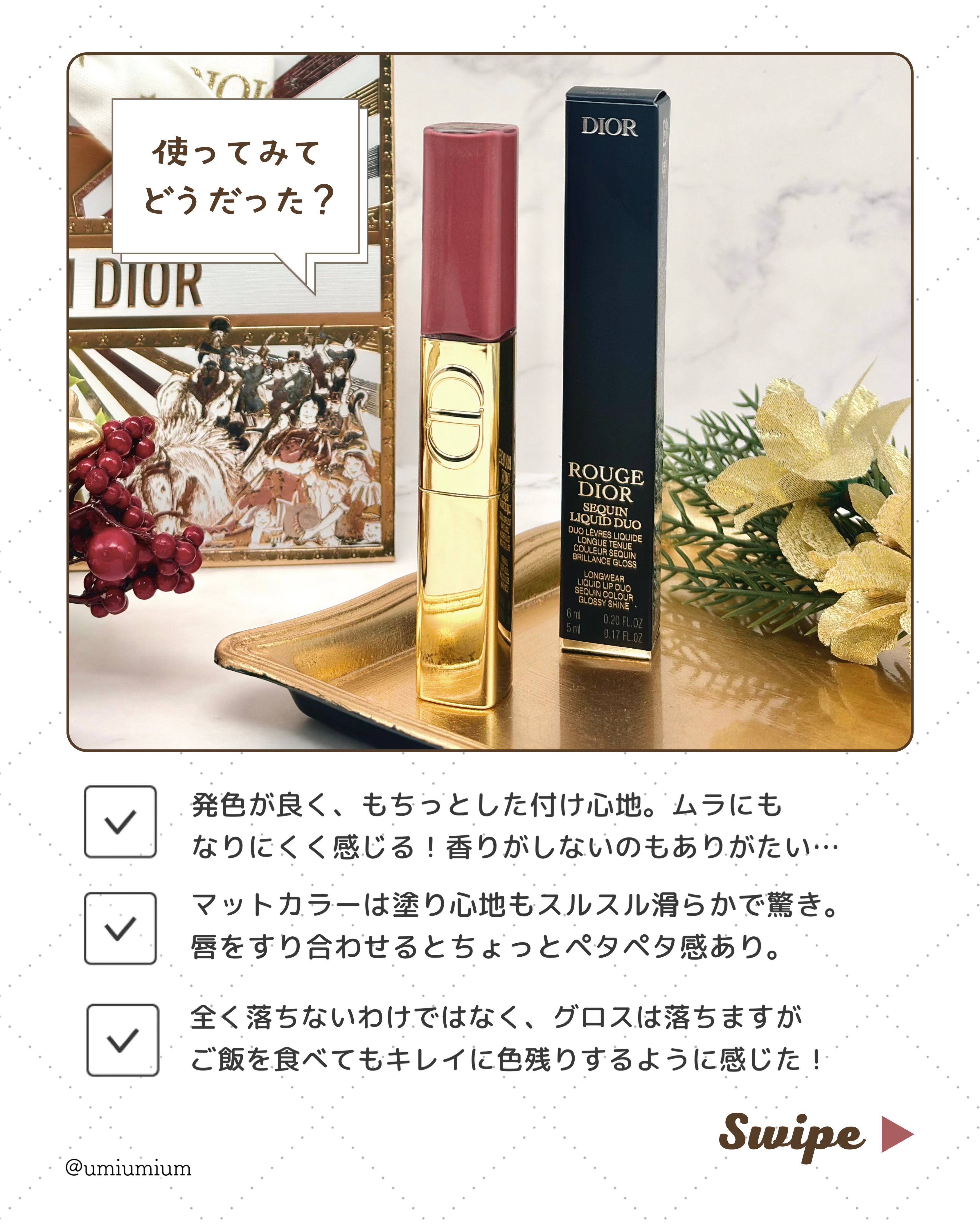 \ディオールホリデー限定/ 落ちにくいデュオリップが限定発売!🙌🏻 Diorルージュディオールシークイン リキッドデュオ 420ピンクスター¥6,490 塗った時はマットなのに 唇をこするとラメが溢れてくる 魔法みたいに不思議なリップです...