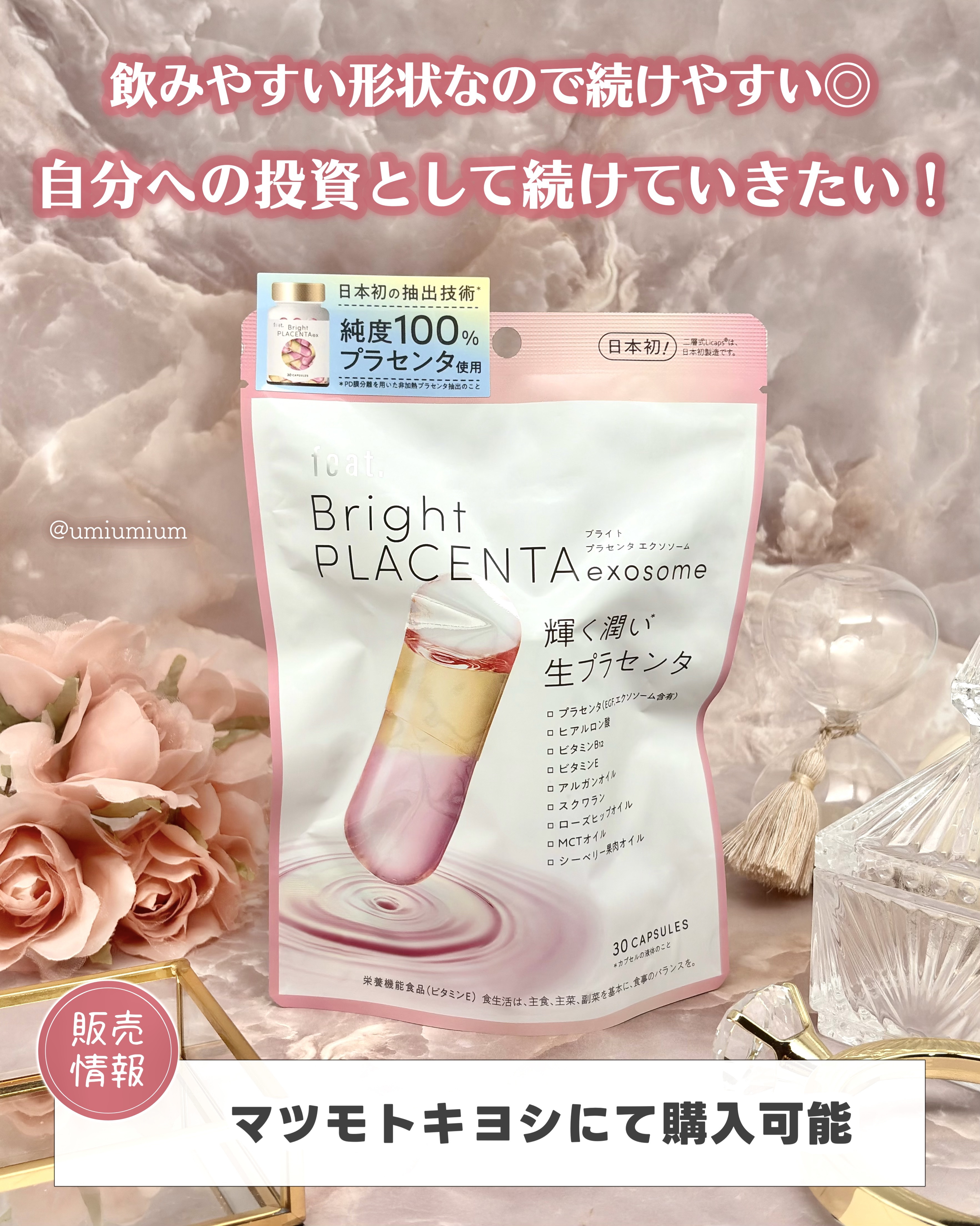 .feat.(フィート)フィートプラセンタエクソソーム日本初の抽出技術*1純度100%プラセンタ使用!プラセンタエクソソームは、特殊フィルターで非加熱で抽出された生プラセンタなんです👀生プラセンタってすごいよね👀生プラセンタ×MCTオイルの二...