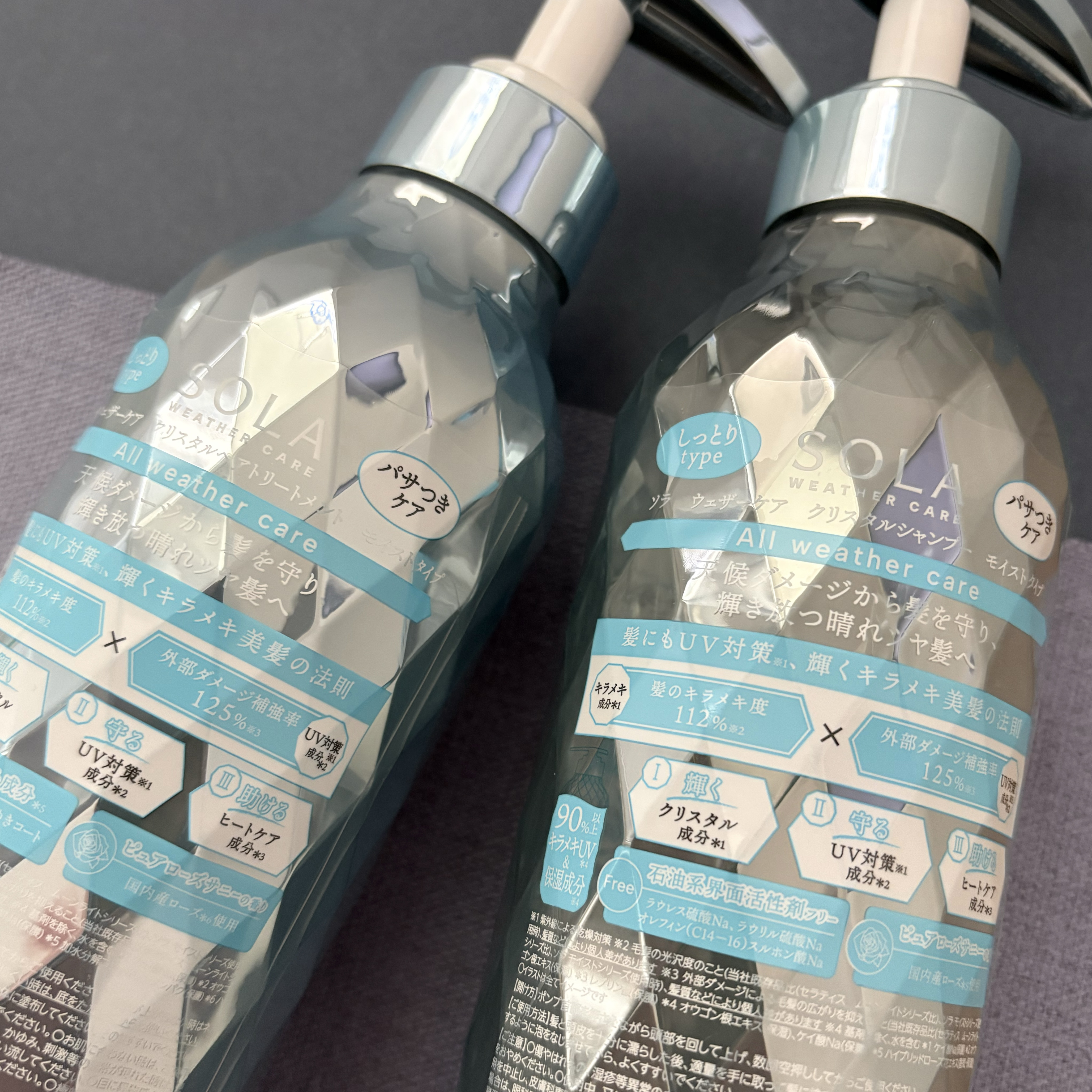 SOLAWEATHERCAREクリスタルシャンプー/ヘアトリートメント リペアタイプ内容量:各400ml価格:各¥1,650(税込)どんな天気の日でもツヤ髪へ導くSOLAWEATHERCARE☀️天候による髪の悩みに着目し、独自のウェザーケア...