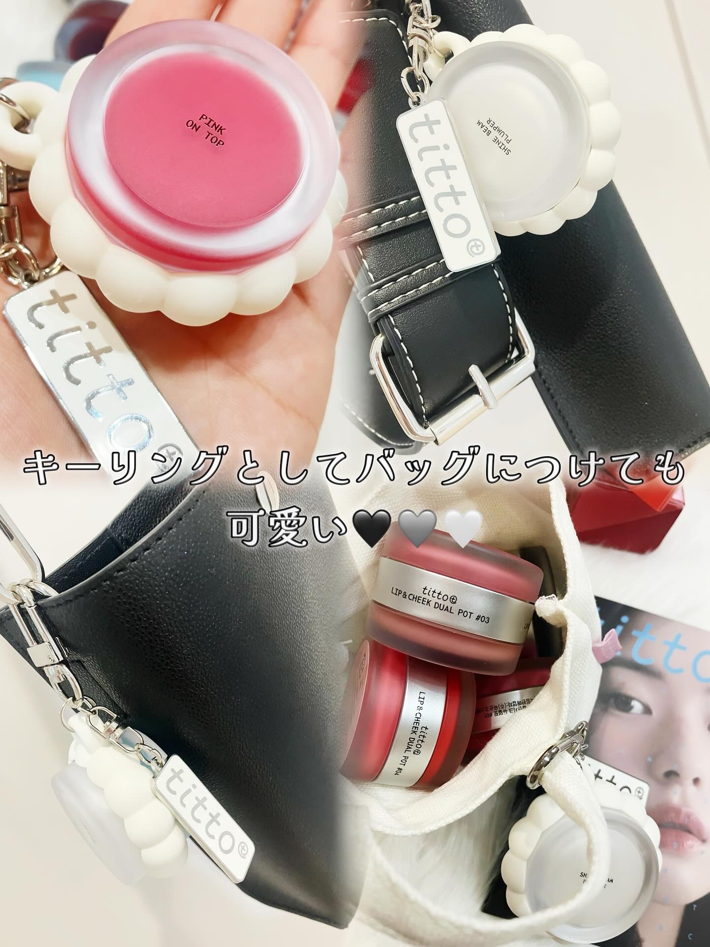 TITTOリップアンドチークデュアルポット💎特徴①リップ&チークの2in1仕様で1つで2役!②ベースカラー+ポイントカラーで自分だけの色をMIXできる🎨③体温でとろけるようなメルティテクスチャー④キーリング付きで持ち歩きたくなるかわいさ💄⑤じ...