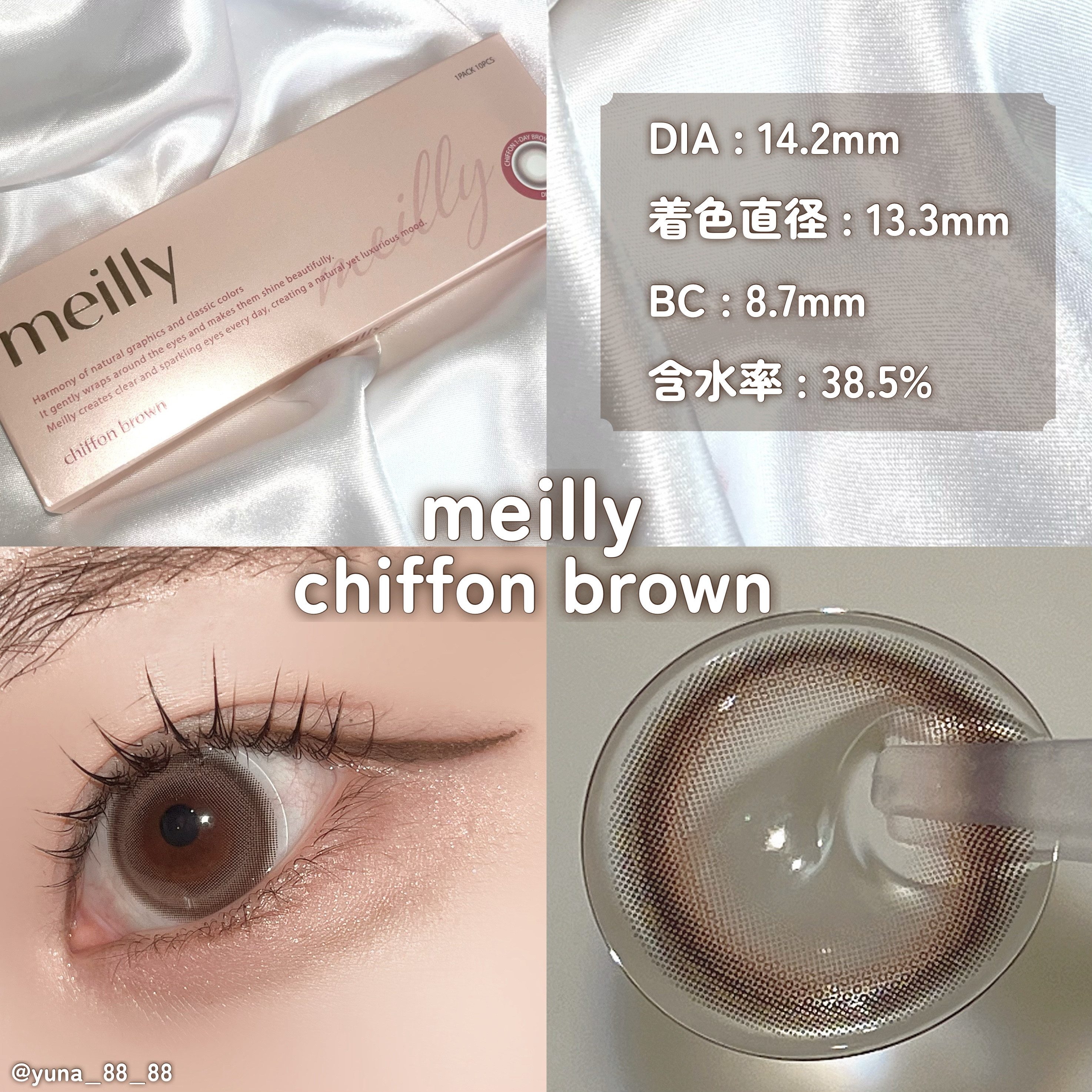 meillychiffonシリーズ4種レビュー🤍✧meilly1Day/DIA14.2mm/G.DIA13.3mm/BCシフォンベージュシフォンブラウンシフォングレーシフォンピンク自然なグラデーションぼかしフチでふんわり盛れる🤍ナチュラルに瞳...