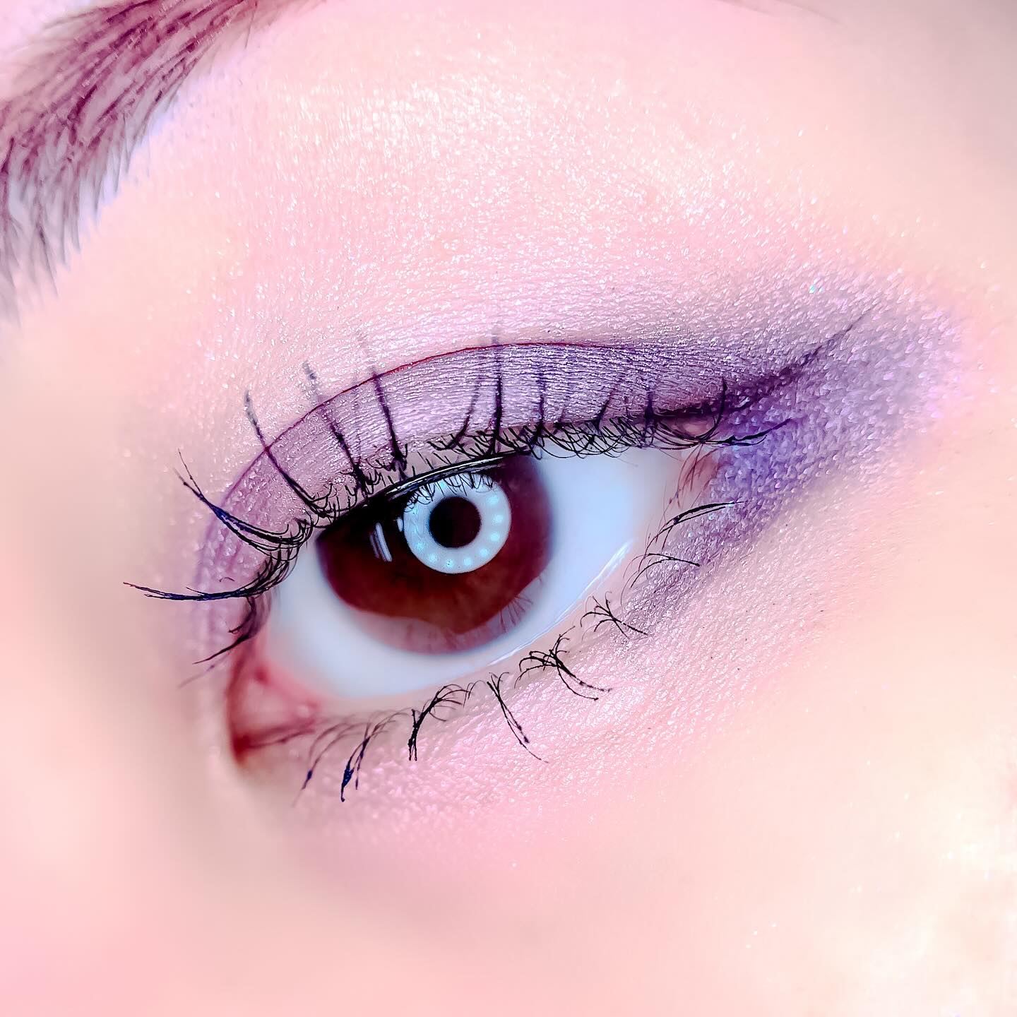 ベースに右上、目頭から黒目上に真ん中、黒目〜目尻に右下を、左上を目頭にくの字に塗ってもらいました✨ ピンクサクラよりもクールな感じで、目で見た色より私の肌では紫っぽく発色しました😍 上2つはラメはぎっしりでときめく💓 ブラウンメイクがとても苦手だけれどこれならブラウンメイク出来そう👌(かなり紫寄りですが) くすみ感は強いので苦手な方は厳しいかも…(特に真ん中) クールな印象になるので大人顔さん向けor大人顔になりたい方向けのイメージです✨