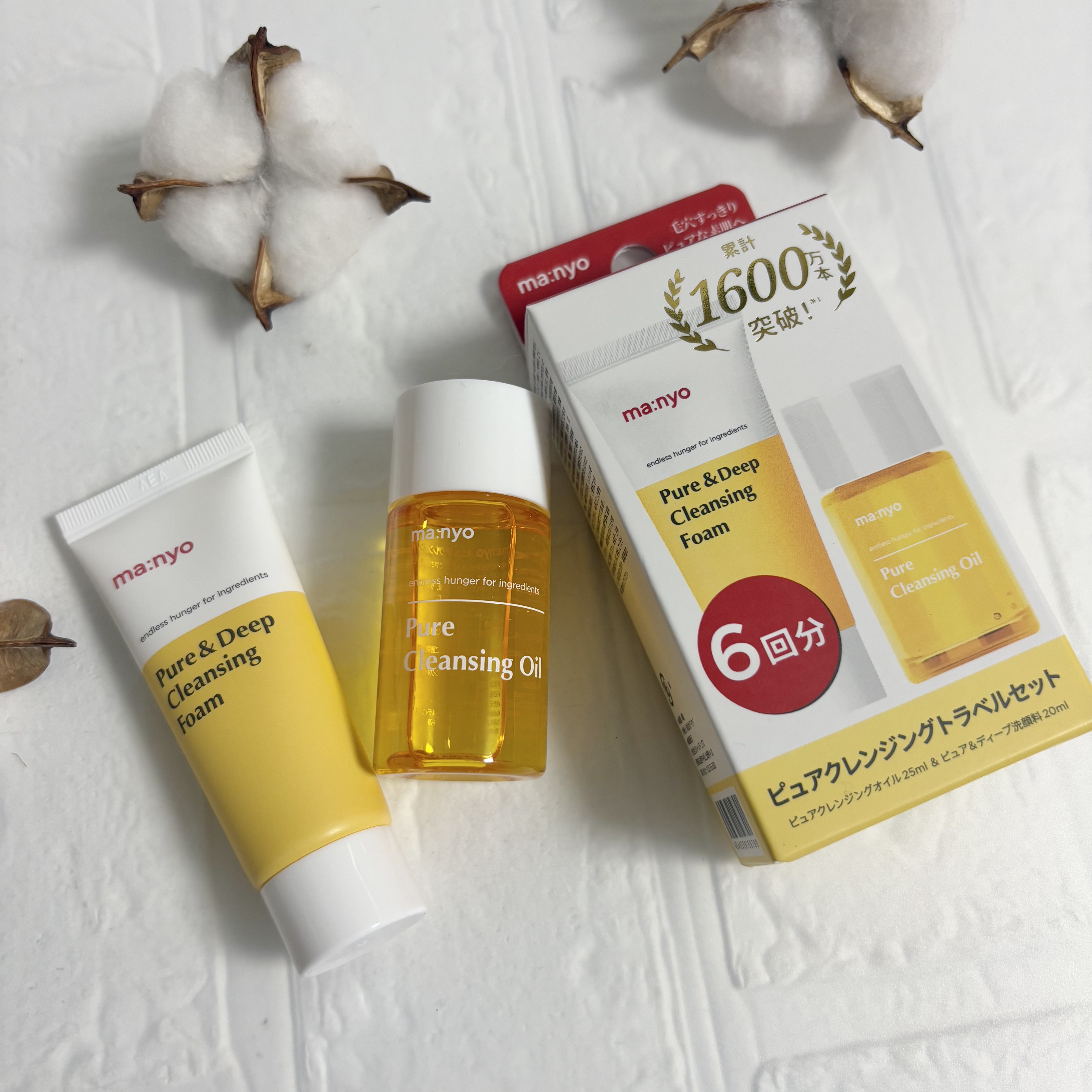 ma:nyo⌇@manyo.japan〖ピュアクレンジングトラベルキット〗人気のピュアクレンジングラインから、トラベルサイズのお試しセットが登場𓂃𓈒𓏸約6回分使えるミニサイズの洗顔料とクレンジングオイルがセットになっていて、旅行やサウナ、お泊...